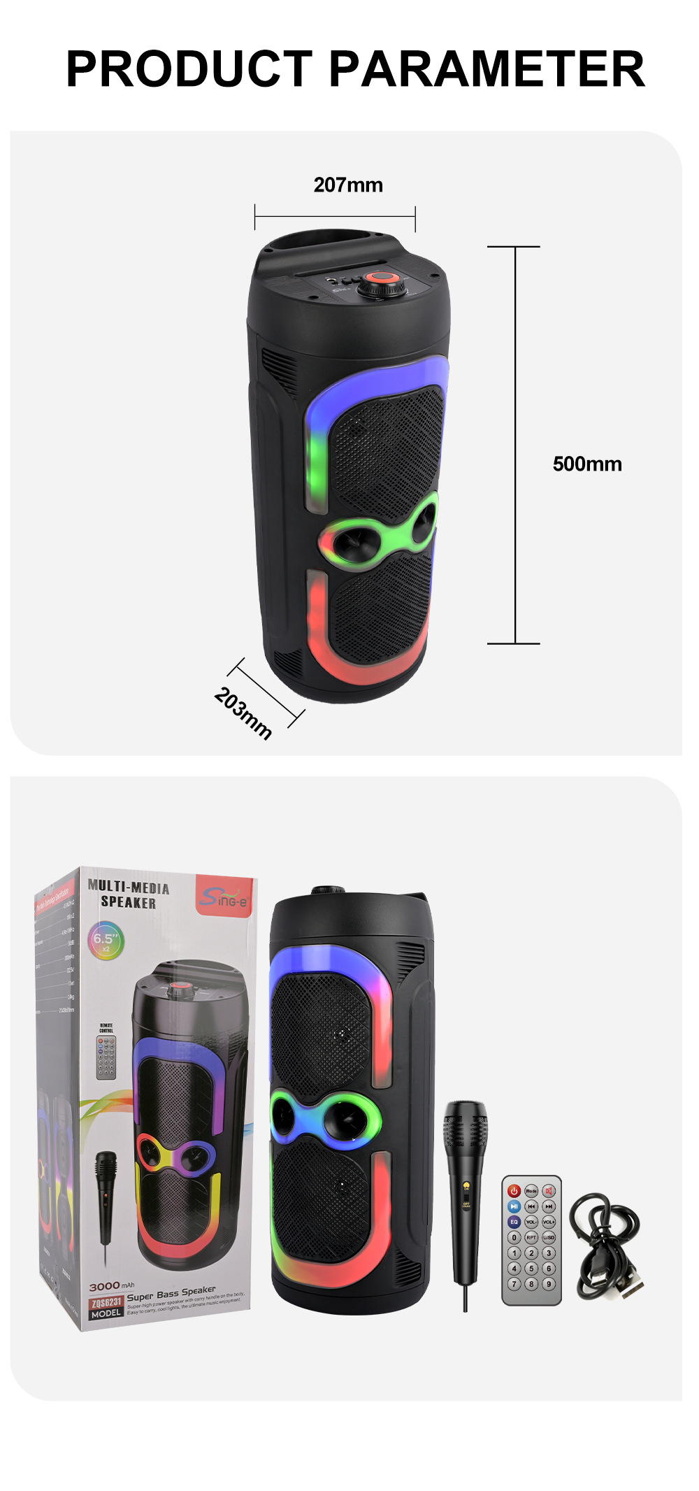 配件 :充电线.遥控器.(有线话筒)