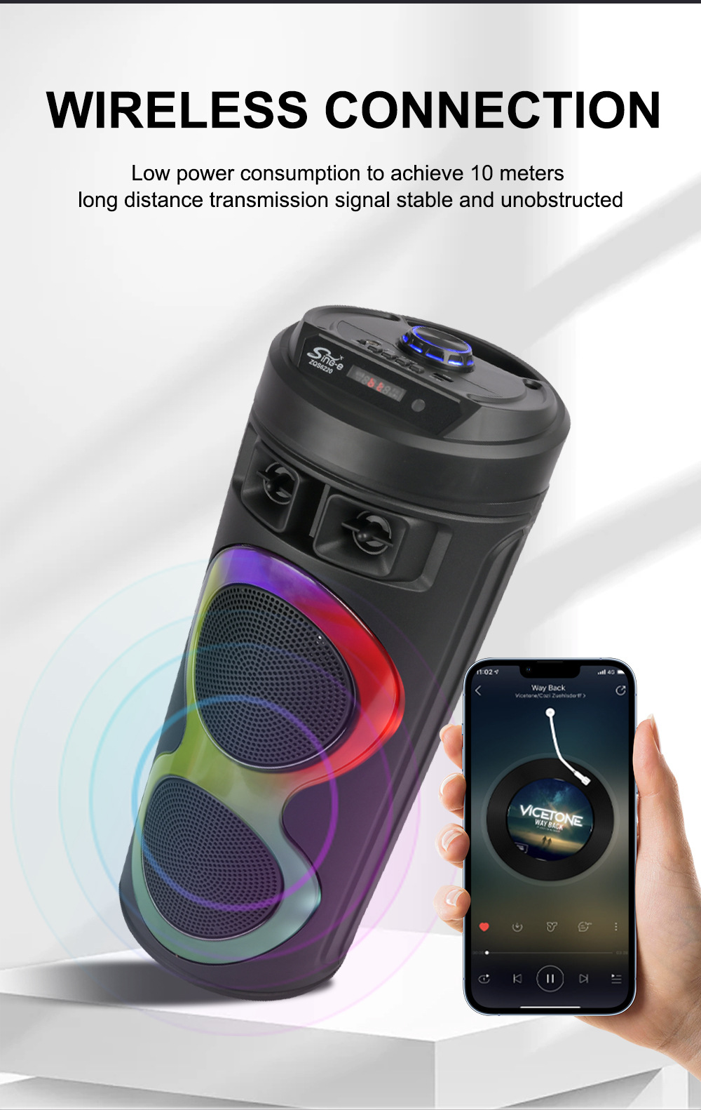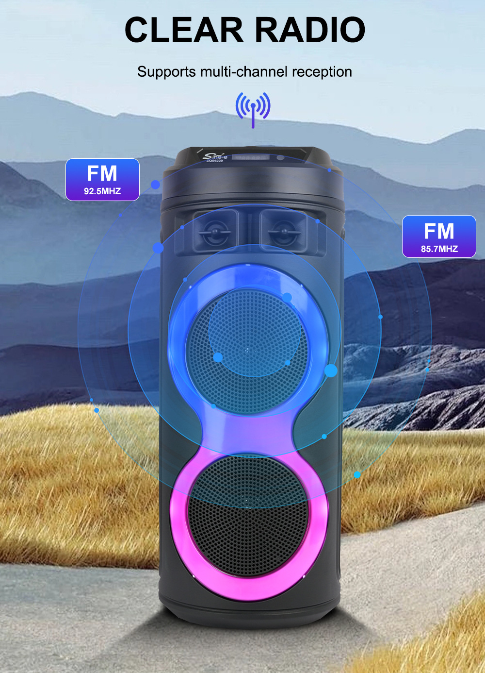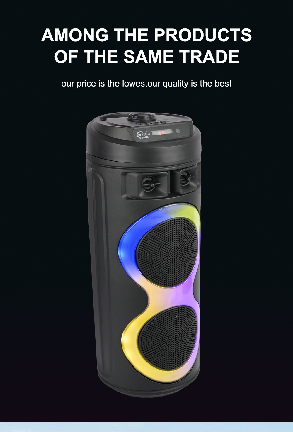 牙,带麦克风功能。带遥控功能。旋钮主音量调控,旋钮混响调节,带蓝牙/带收音/带遥控/电位器音量+带显示屏/+USB带5V升压、带七彩灯、彩灯受MOD控制、对箱功能