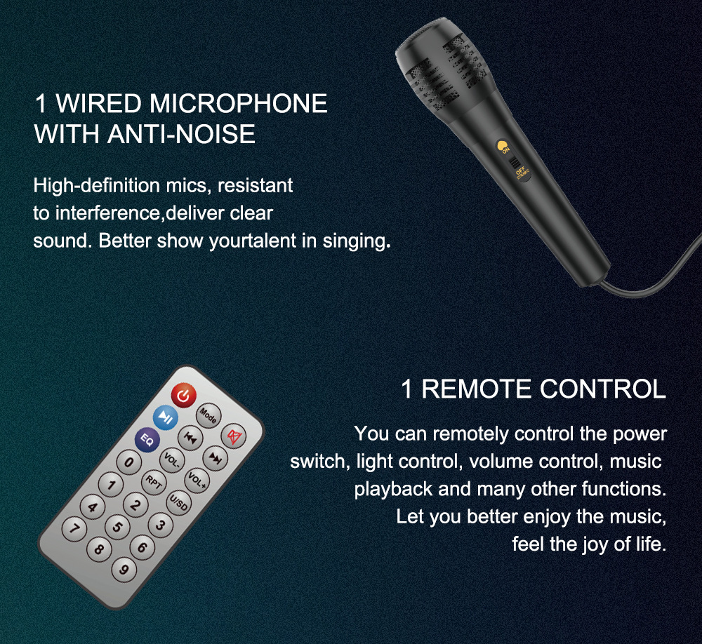 配件:充电线.有线话筒.遥控器