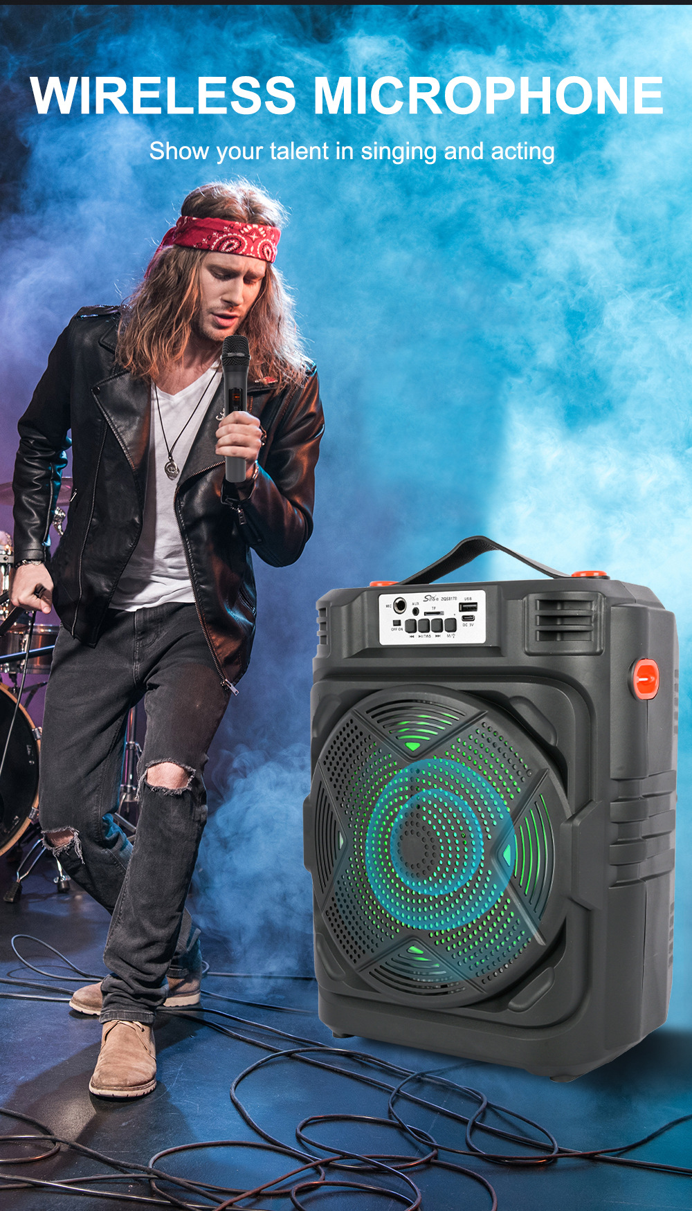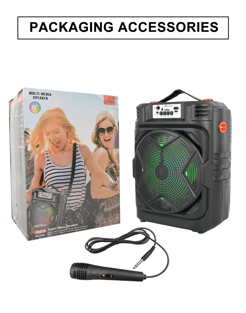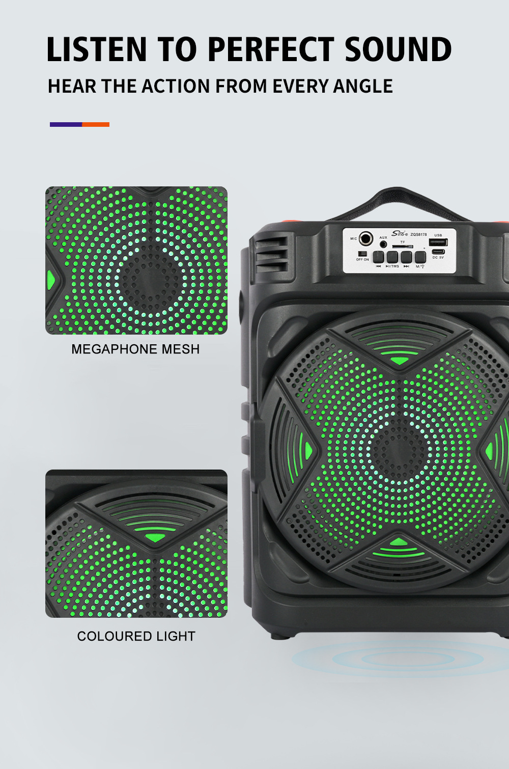 带BT/USB/TF卡/FM/MIC/AUX、DC-5V充电(Type-c座)单功放、无屏、无遥控