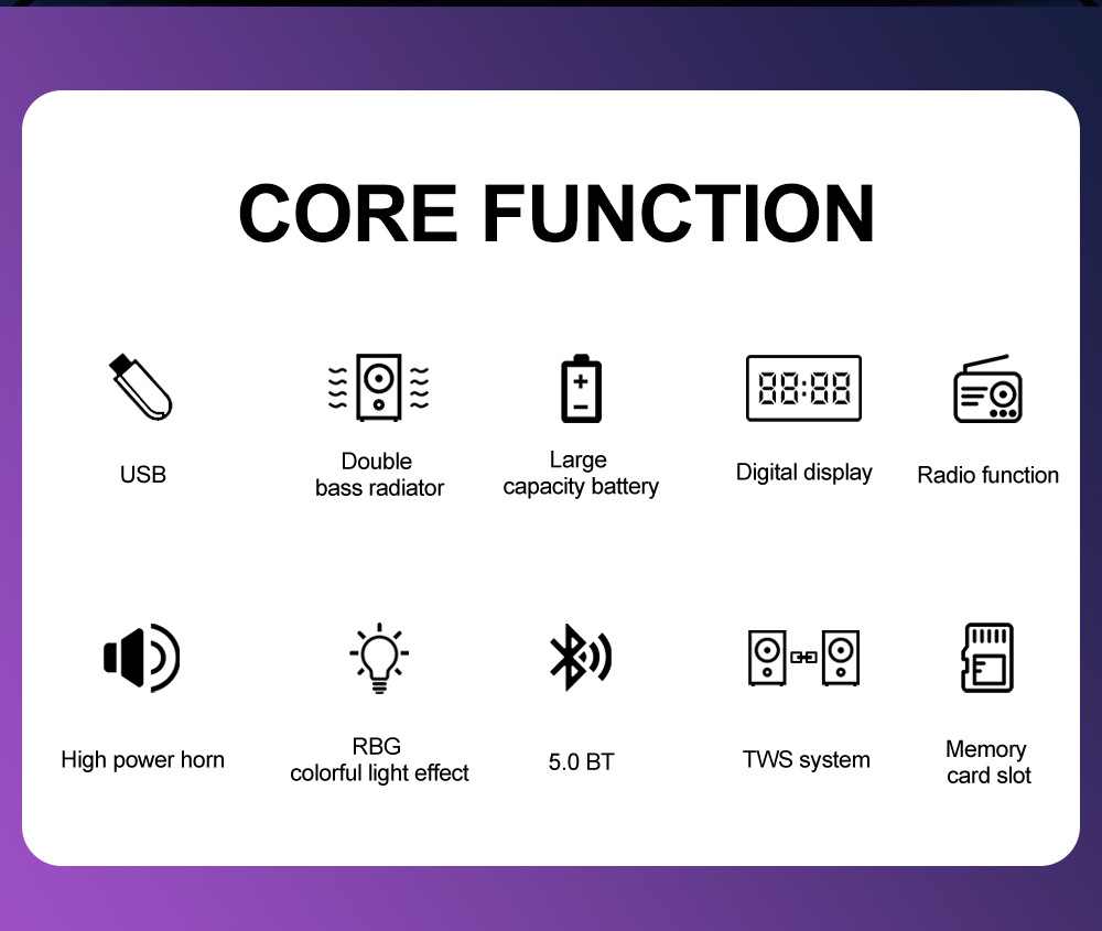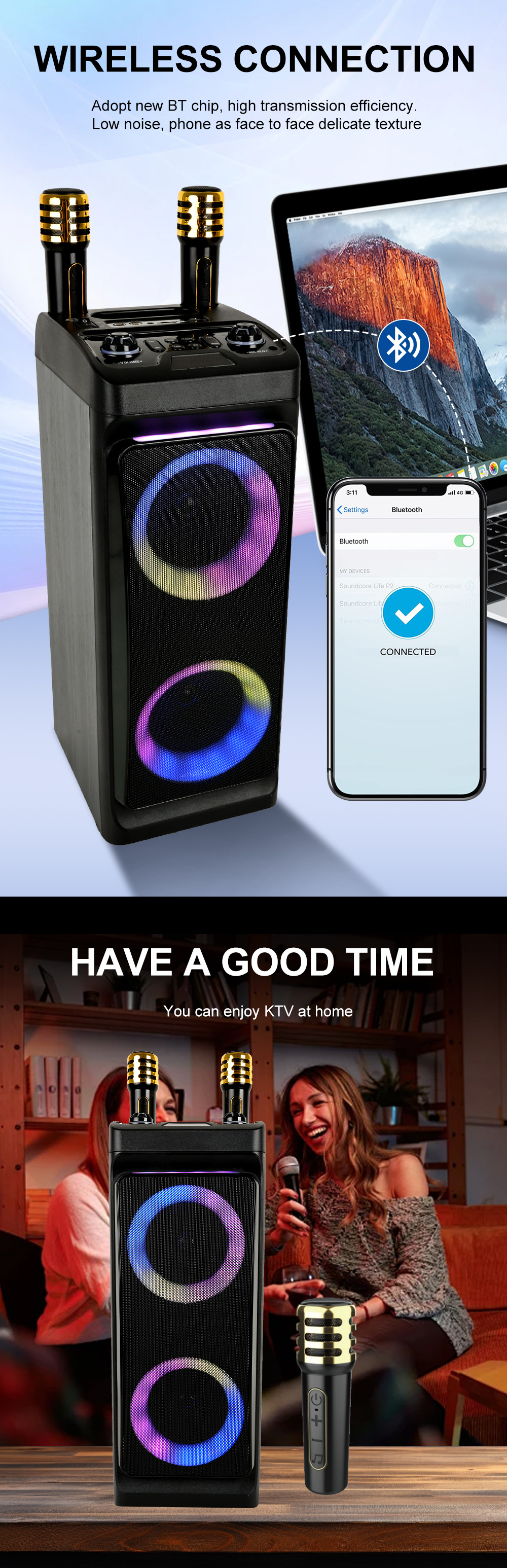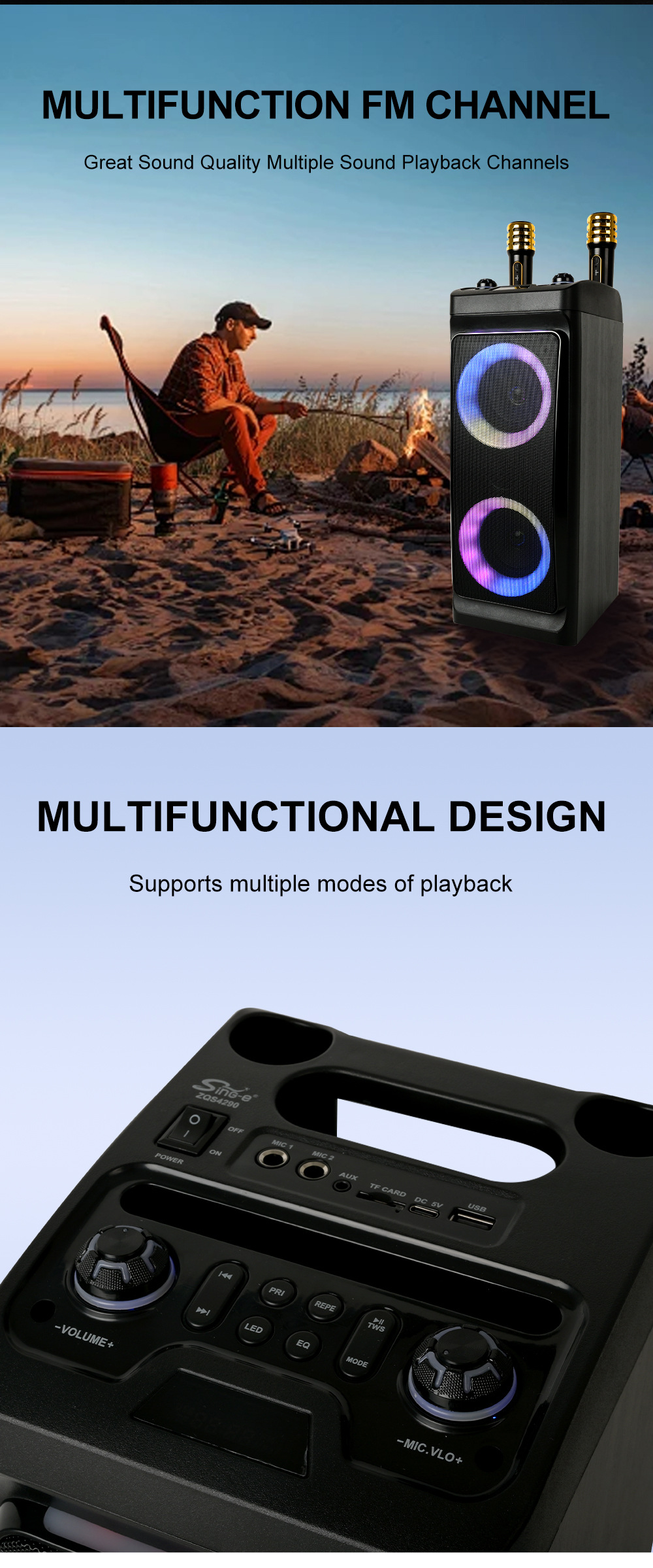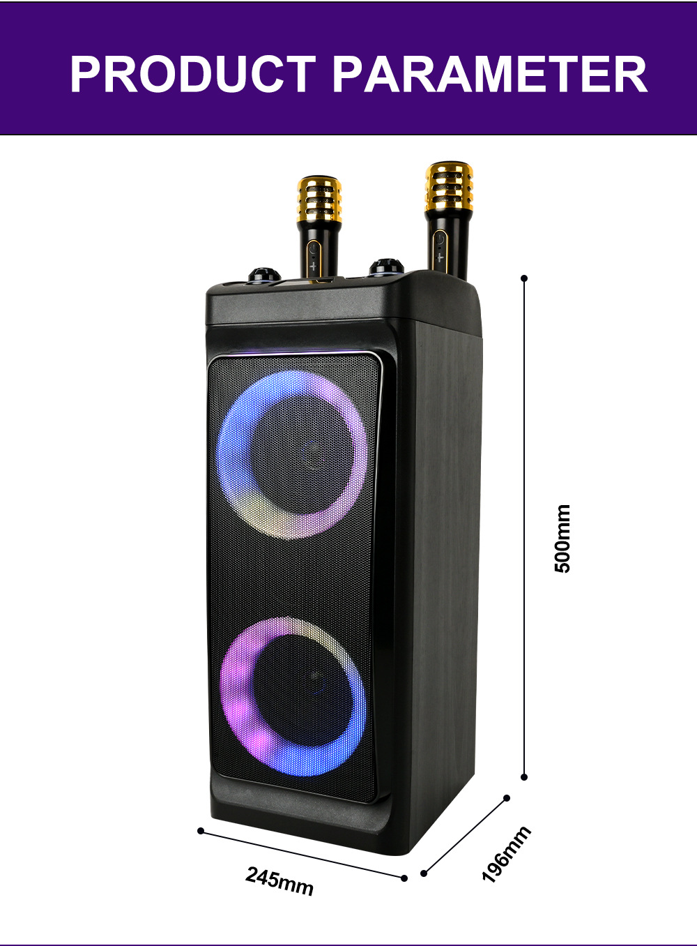 带BT/USB/TF/MIC*2/FM/AUX/带遥控
