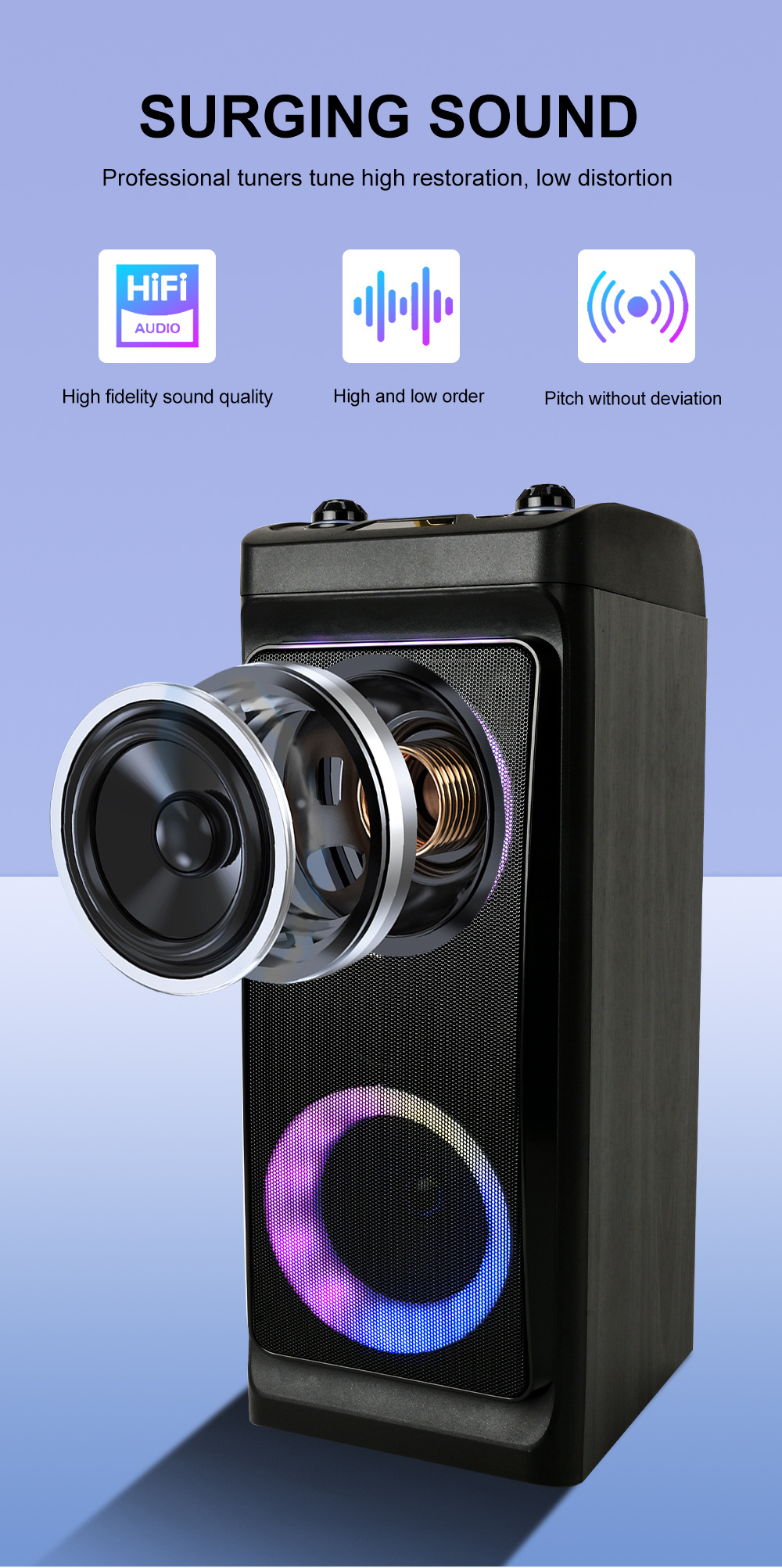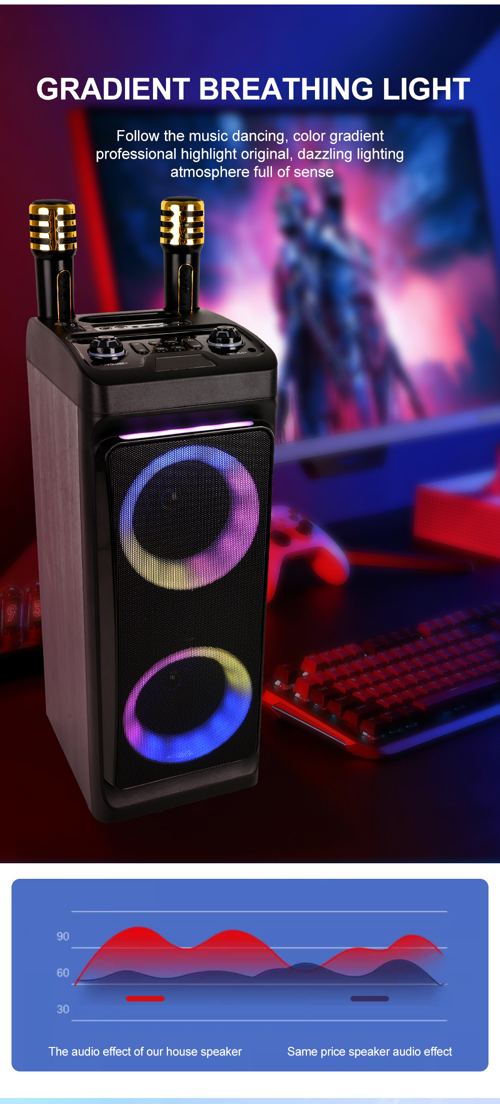 +显示屏、对箱功能、电位器音量、无锂电保护+带幻彩灯、幻彩灯受LED键控制