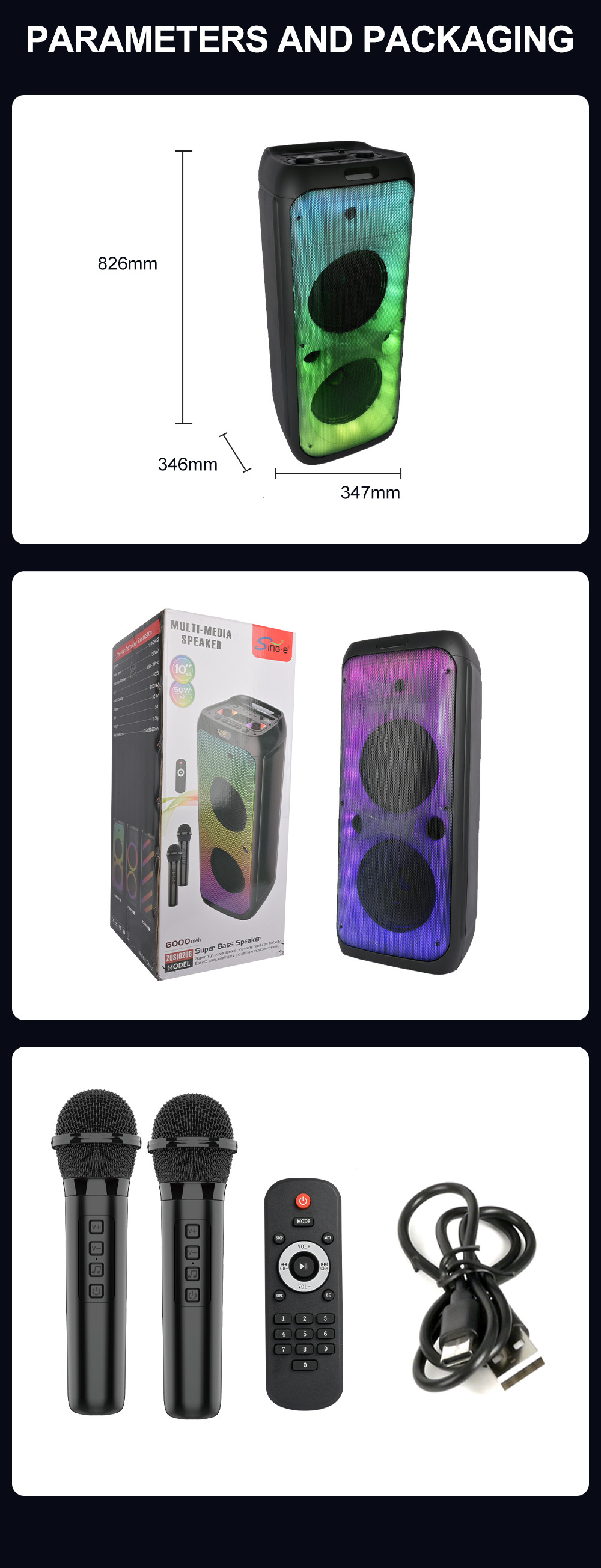 配件 :说明书.欧规充电器.遥控器.2个无线话筒