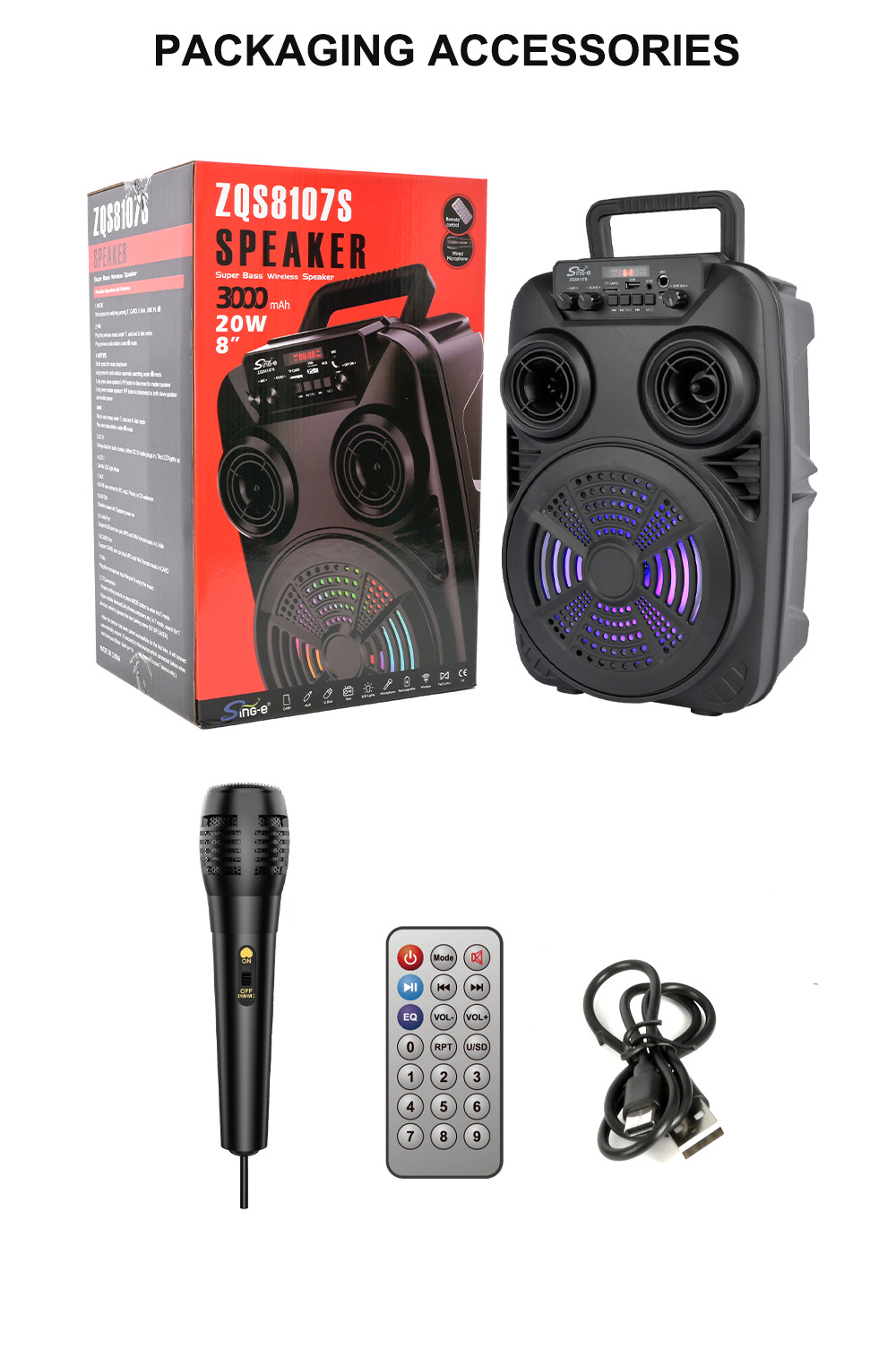 配件:充电线.有线话筒.遥控器