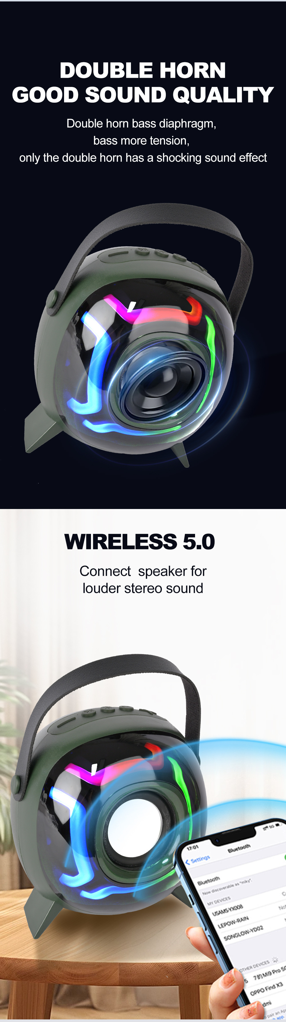 +5W单功放/对箱功能、按键音量