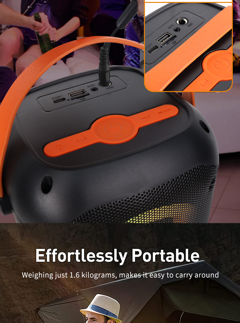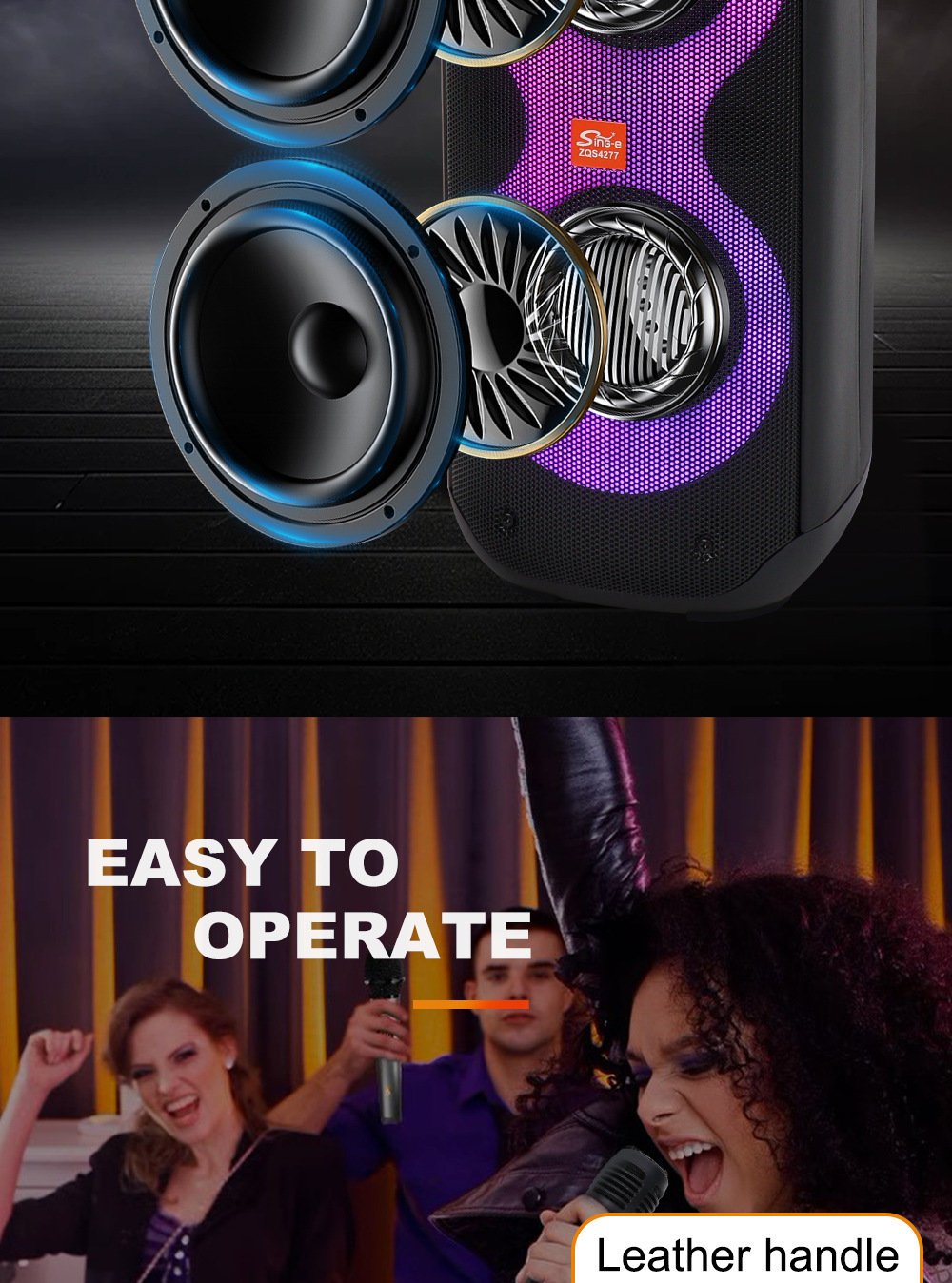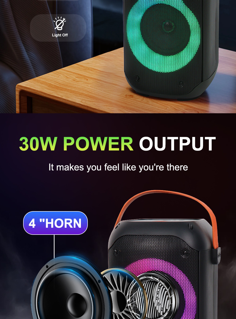 +对箱功能、按键音量、带锂电保护.+带幻彩灯、幻彩灯受灯键控制、