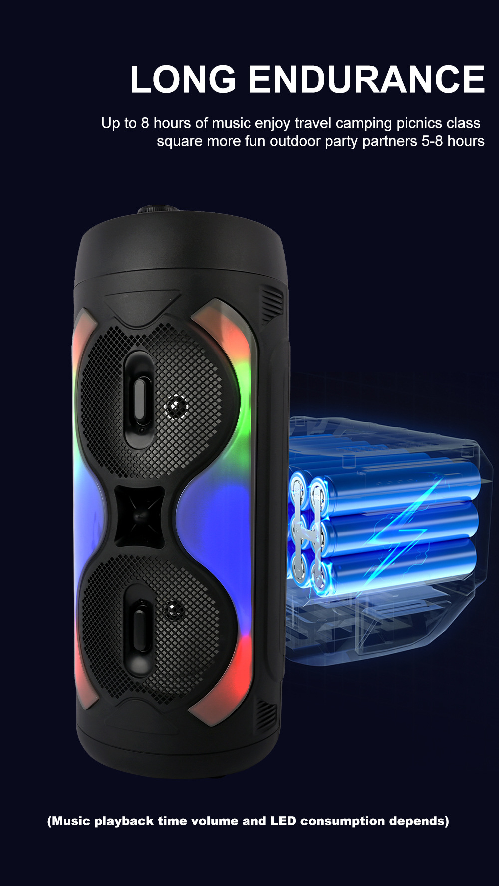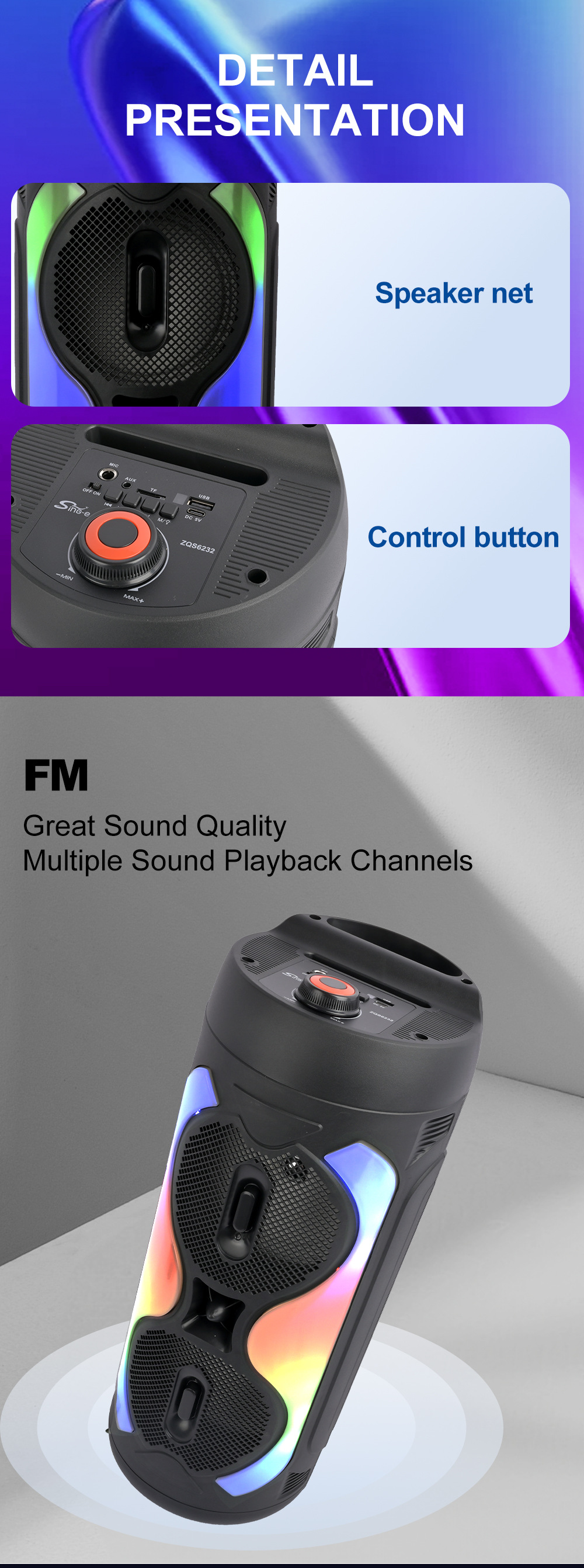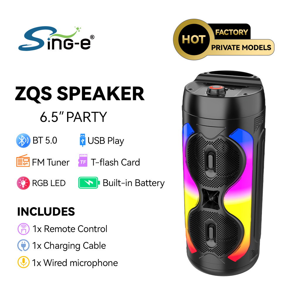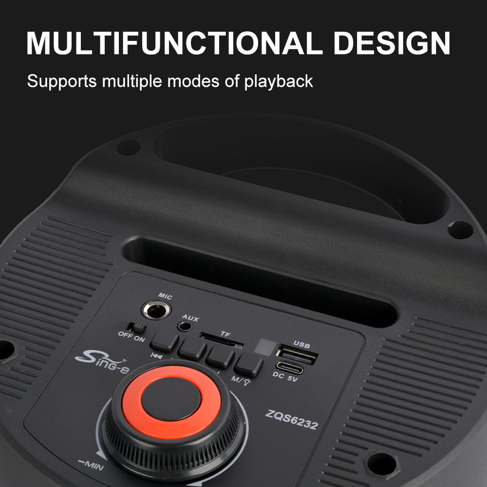 带BT/USB/TF卡/FM/MIC/AUX、DC-5V充电(Type-c座)+5W双功放、无屏、带遥控
