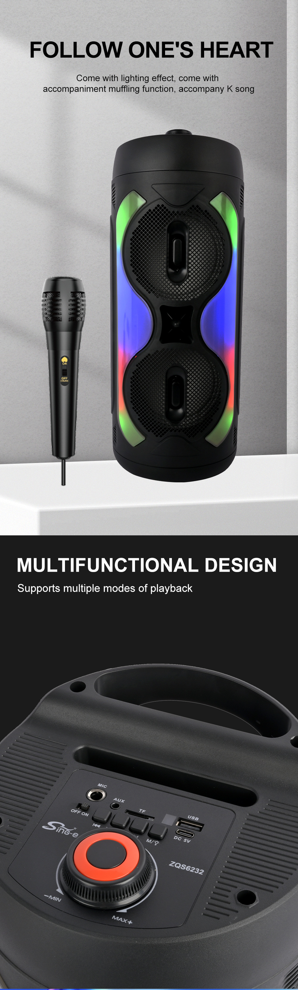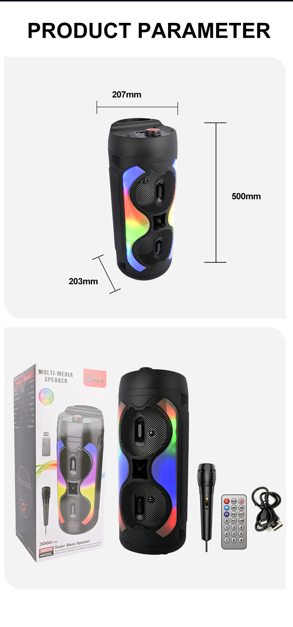 配件 :充电线.遥控器.(有线话筒)