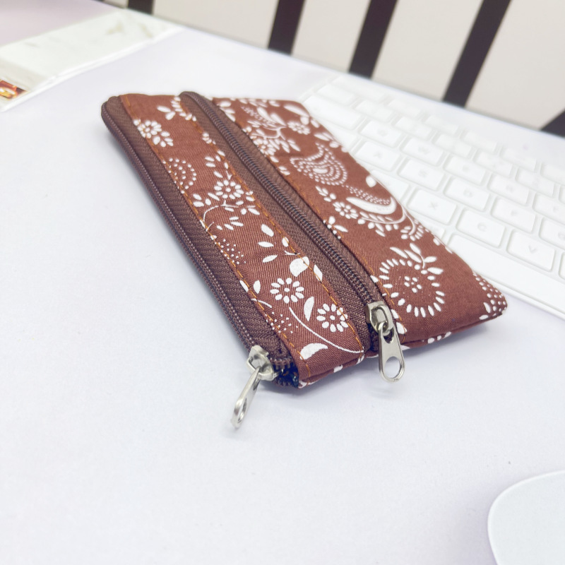 货号: 双层零钱包 材质: 帆布 图案: 花卉 流行元素: 车缝线 风格: 都市简约 适用性别: 女 品牌: 其他 里料质地: 涤纶 钱夹折数: 2折 颜色: 2层新花款(请按12的倍数拍),2层字母 有可授权的自有品牌: 否 上市年份季节: 2025年春季 适用场景: 日常搭配 功能: 透气 重量: 0.06 kg/个