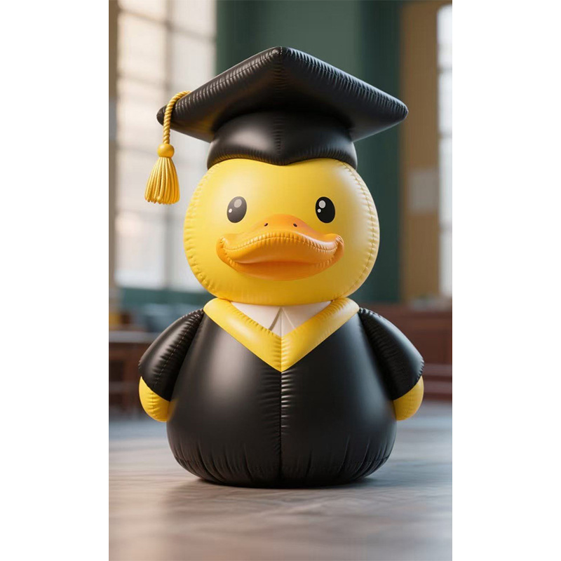 厂家定制场地布置道具发光毕业季拱门充气气模小黄鸭气球小熊学士充气气模小黄鸭头戴学士帽