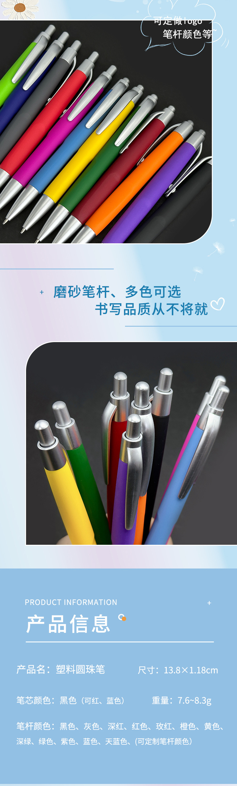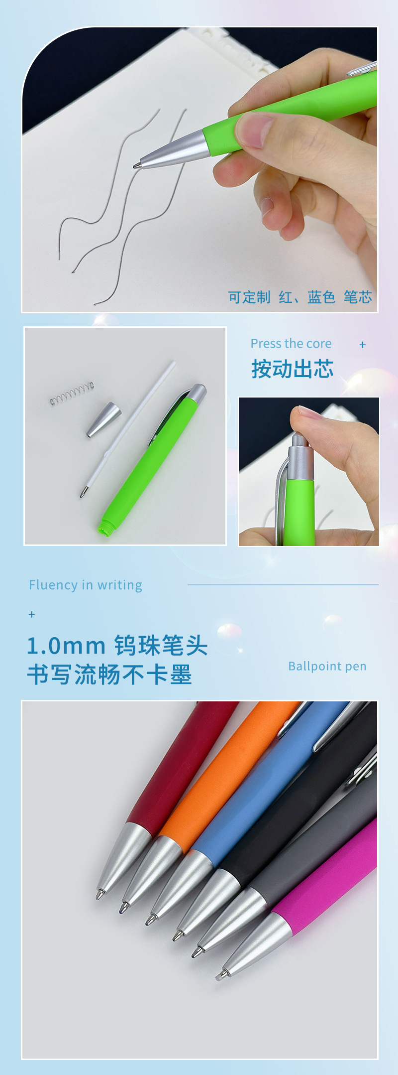 公司定做笔20余年,工厂生产产品有金属签字笔,金属圆珠笔,电容笔,钢笔,水晶笔,木质笔,原木铅笔,塑料酒店圆珠笔,拉画广告笔,礼品笔,中性笔,多色笔,台笔,电子笔等。