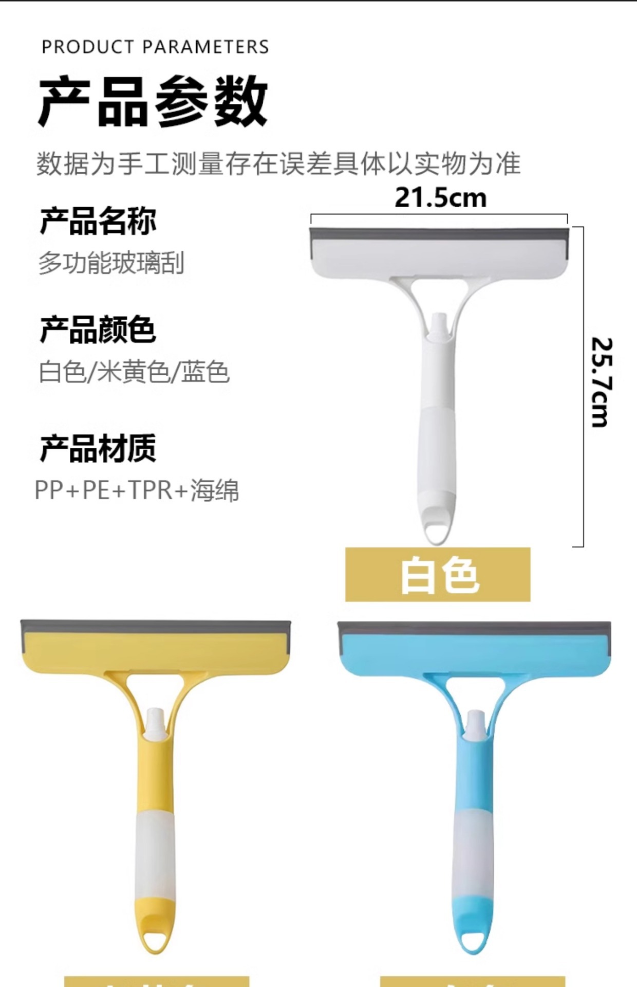 品牌: 其他 货号: KL91554415 是否进口: 否 材质: 塑料 类型: 双面擦 产地: 浙江 箱装数量: 其他 贸易属性: 内贸+外贸 价格段: 5-10元 产品上市时间: 2024 规格: 白色,蓝色,黄色 是否跨境出口专供货源: 否 颜色: 喷雾擦污刮水三合一 使用场景: 家用 产品类别: 手动 是否有专利: 否