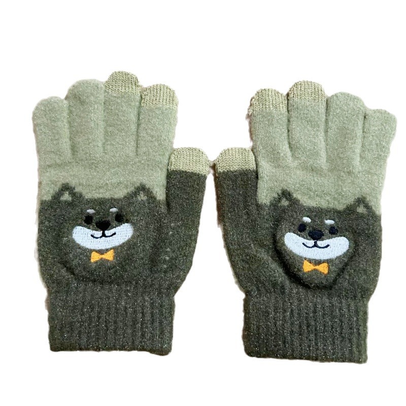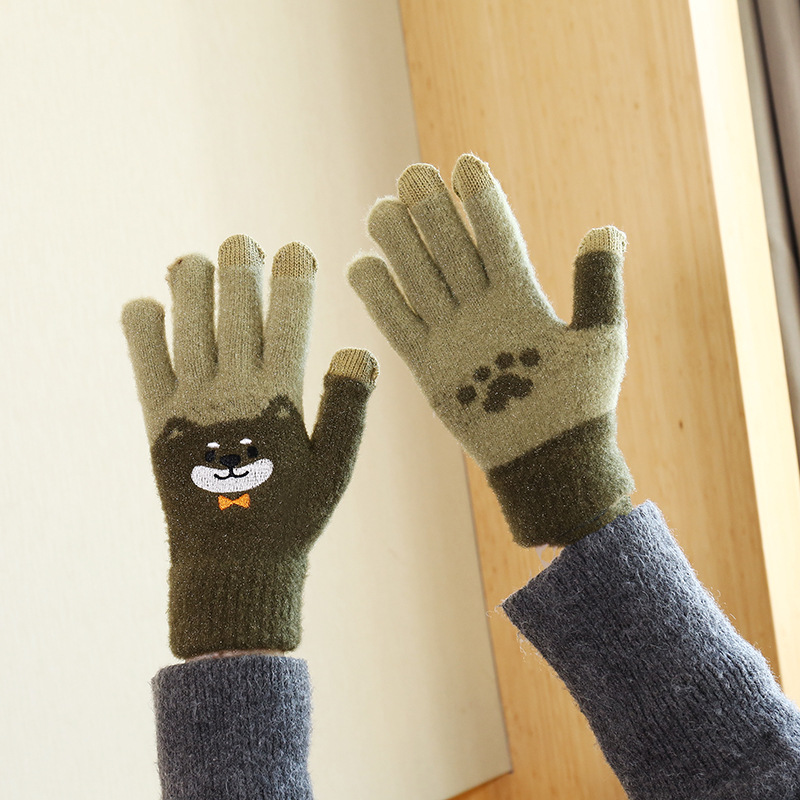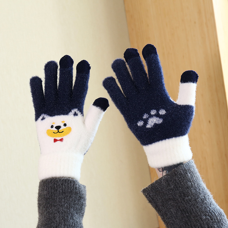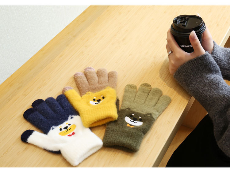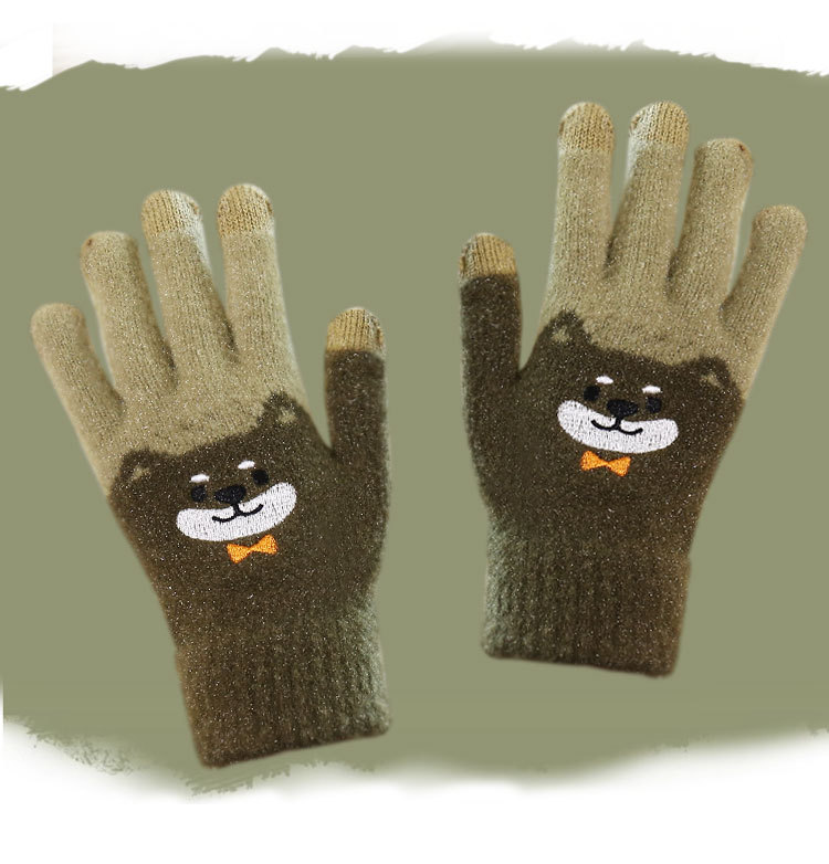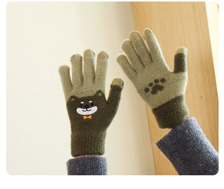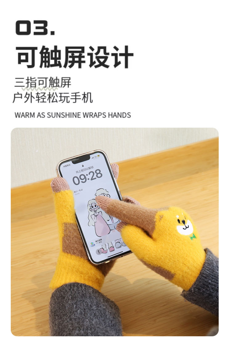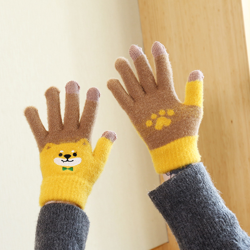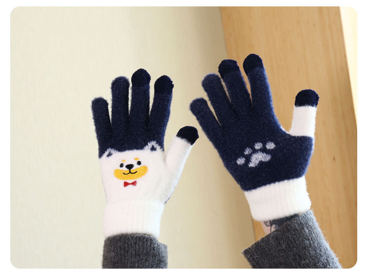 手套女冬天学生卡通秋冬季保暖可爱毛绒韩版全指刺绣加厚加绒触屏 English | 投诉