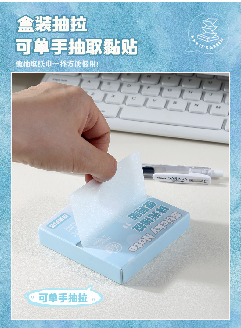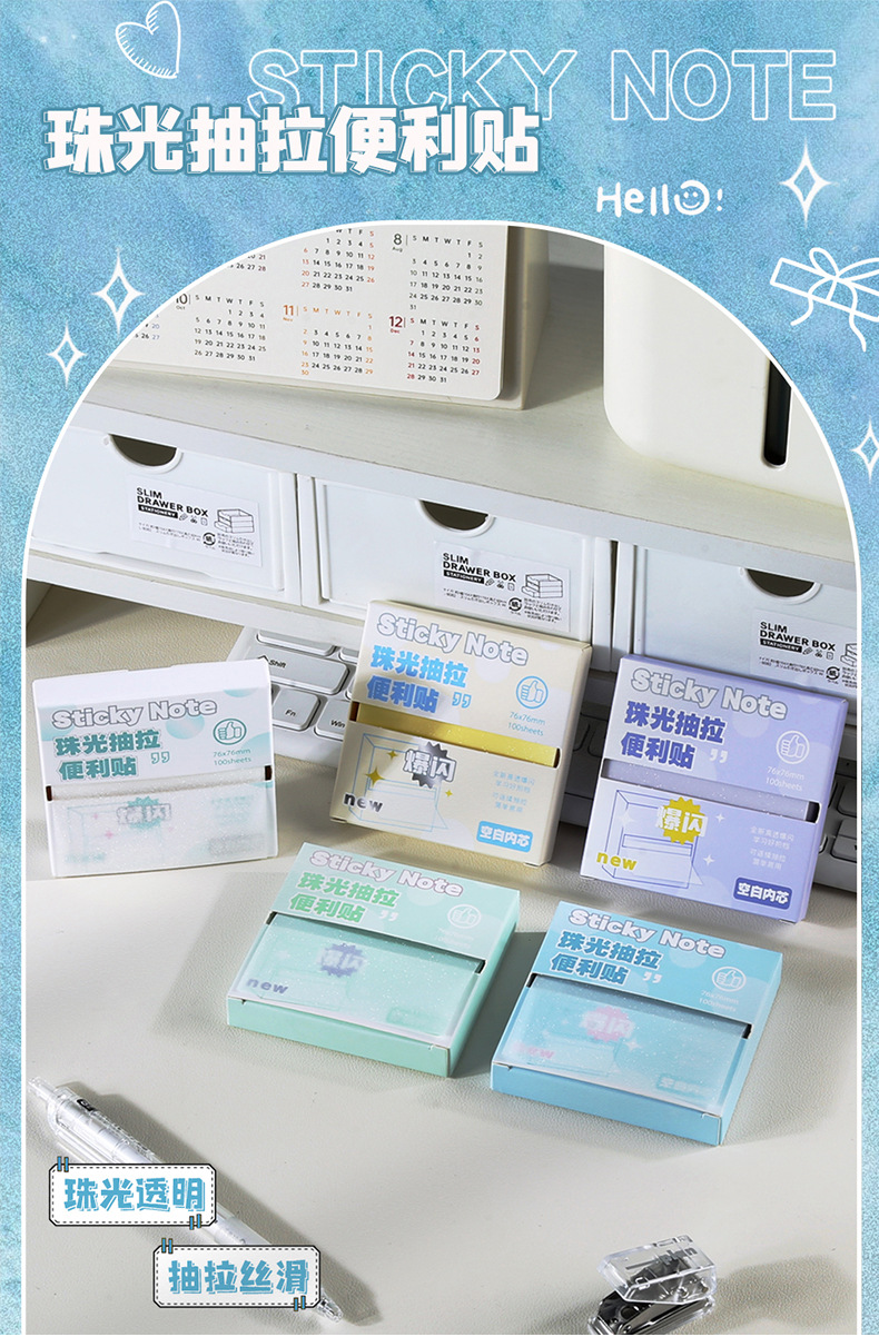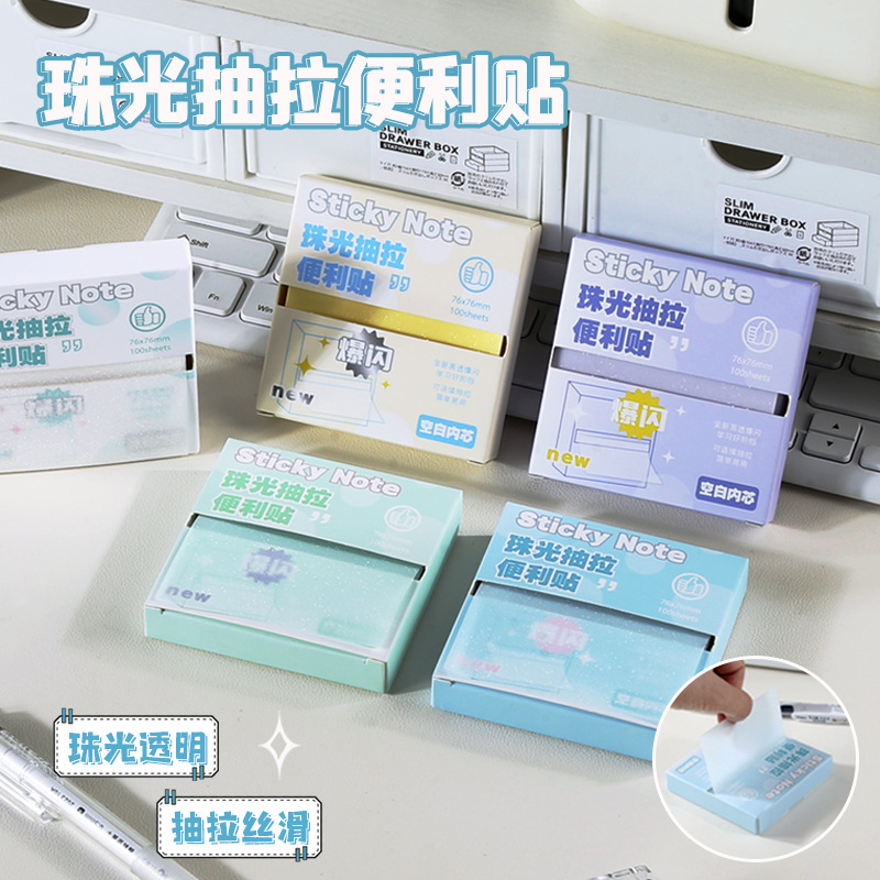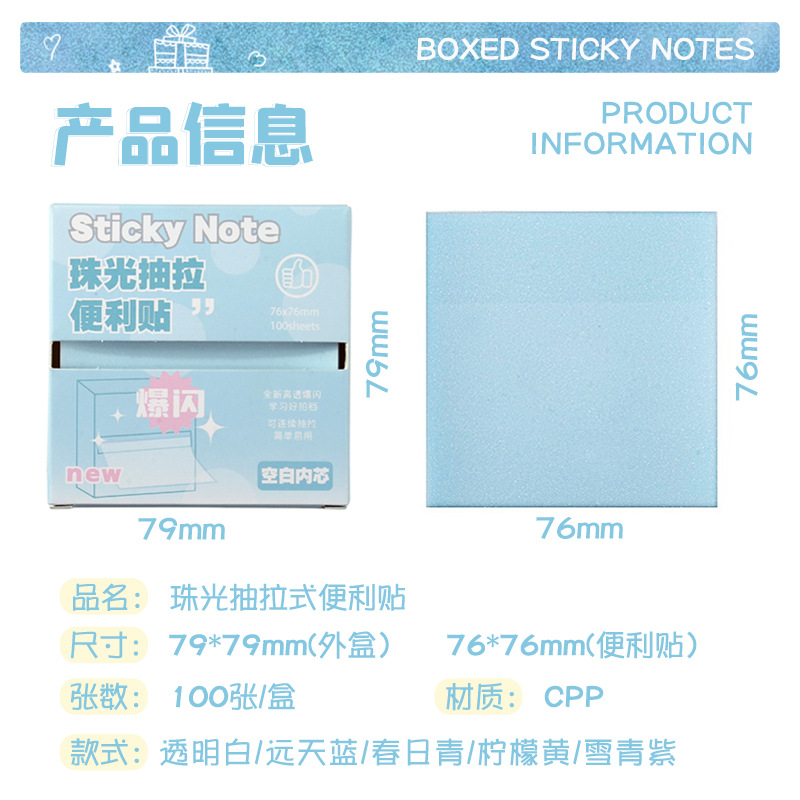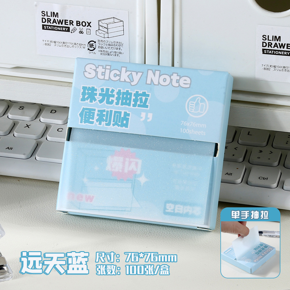 品牌: 无 货号: NO.240 是否可黏贴: 是 封面颜色: 珠光抽拉便利贴/蓝色,珠光抽拉便利贴/白 内页页数: 100 是否专利货源: 否 是否IP授权: 否