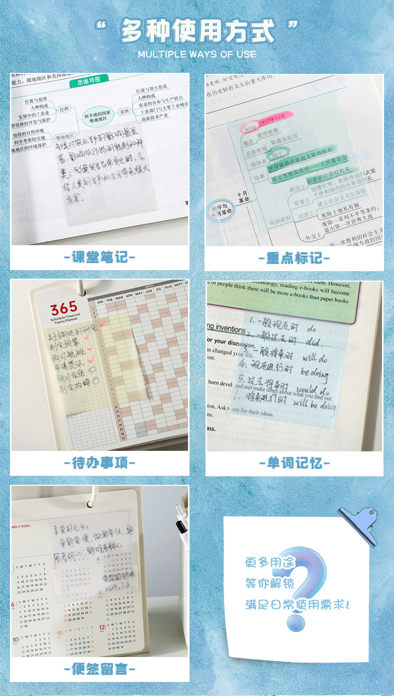 抽拉透明便利贴高颜值学生专用错题纠正标签贴办公标记贴备忘便签 English | 投诉