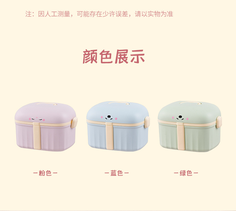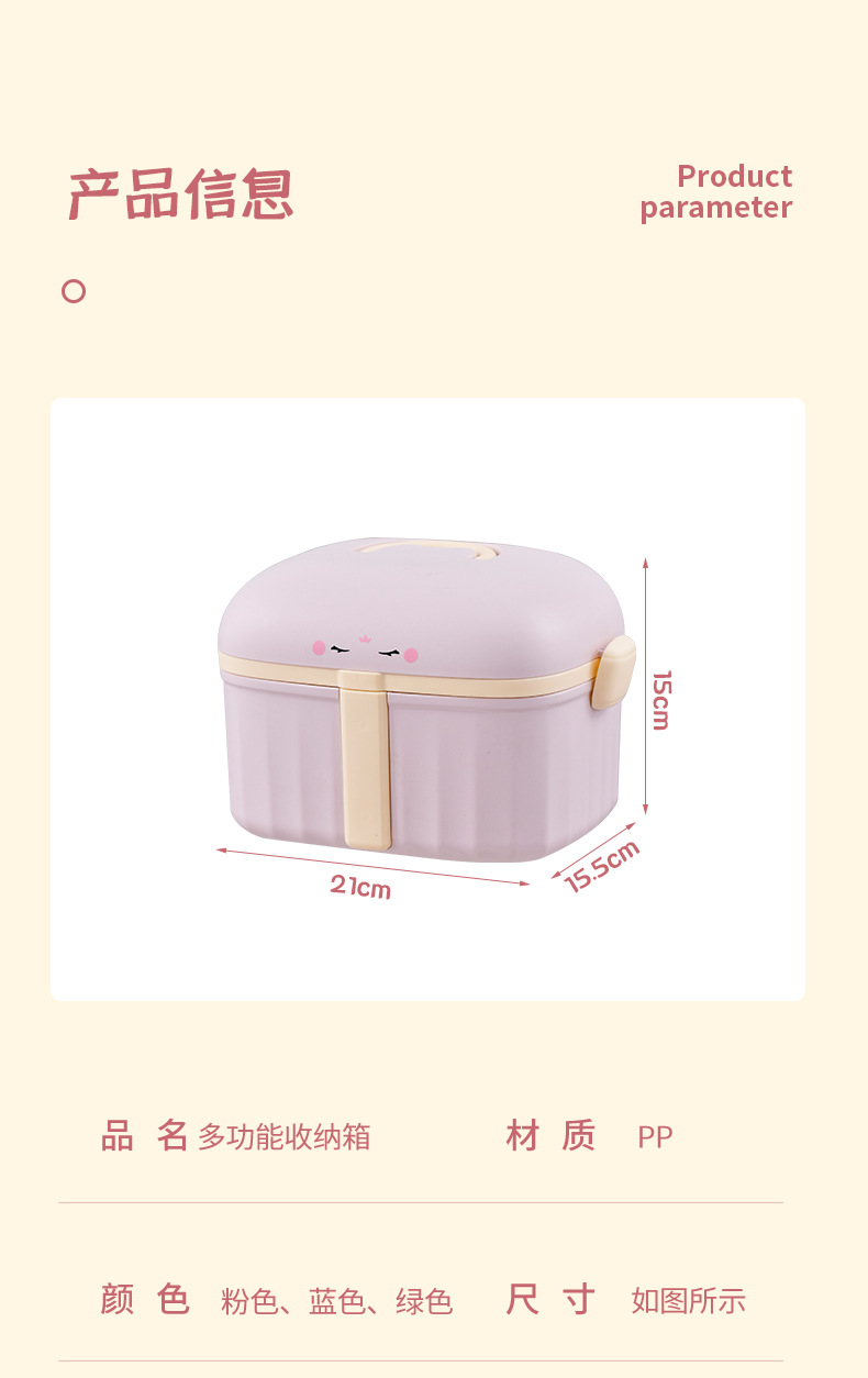品牌: 汇彩 材质: 塑料 是否进口: 否 塑料新料占比: 100 格数: 2个 尺寸: 155*150*210mm 产地: 浙江 货号: 7560 加工定制: 是 加印LOGO: 可以 型号: 7560 贸易属性: 内贸+外贸 箱装数量: 24 专利: 否 产品上市时间: 2023 价格段: 10-20元 颜色: 粉色,蓝色,绿色 主要下游平台: ebay,亚马逊,wish,速卖通,独立 主要销售地区: 非洲,欧洲,南美,东南亚,北美,东北亚, 有可授权的自有品牌: 否