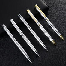 厂家新款不锈钢色按动圆珠笔激光logo商务办公礼品金属笔文具批发