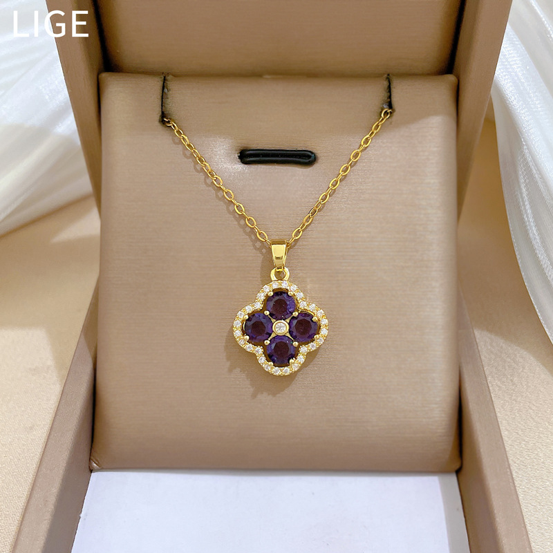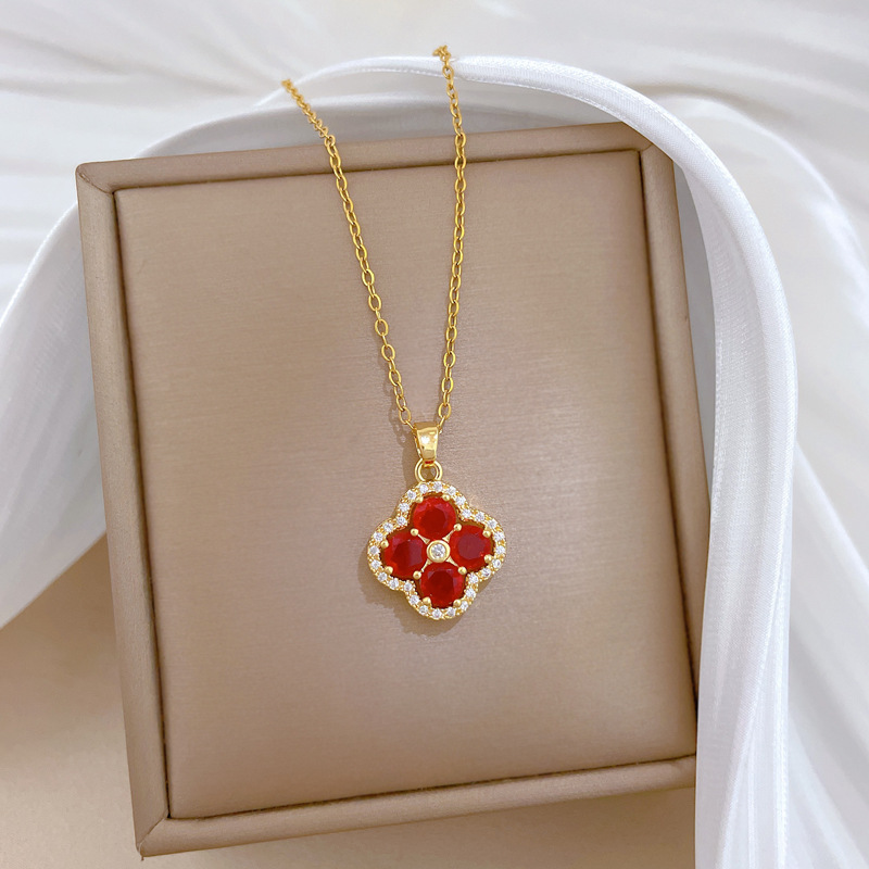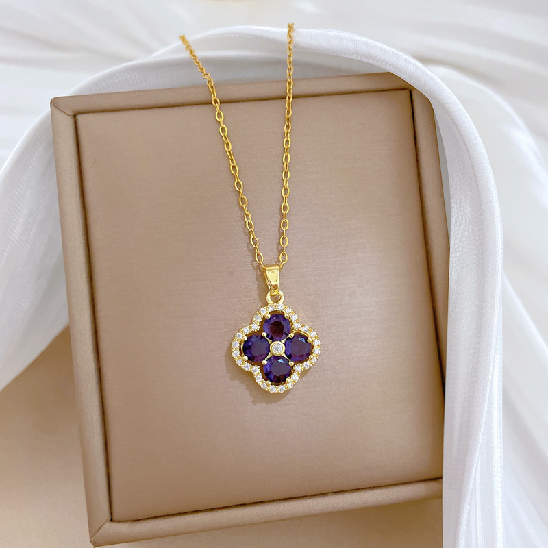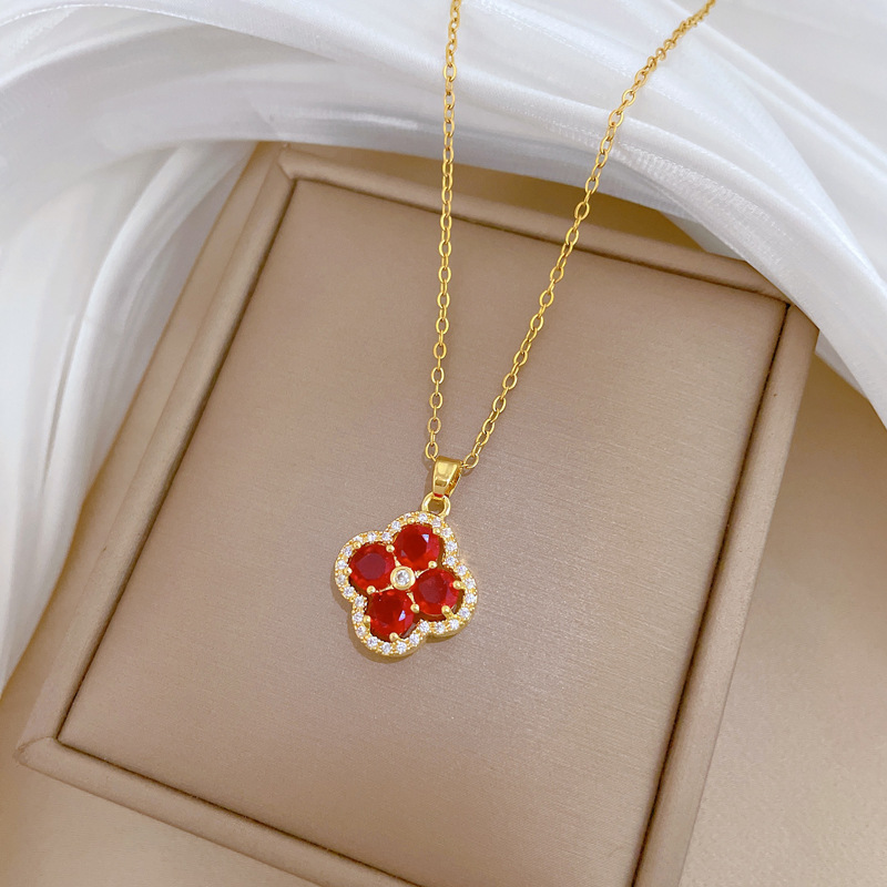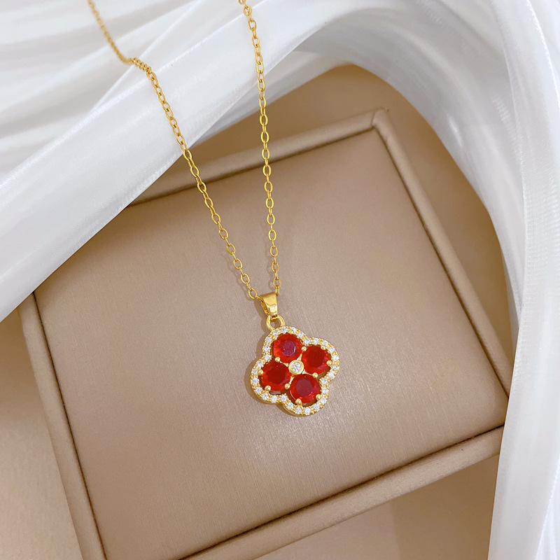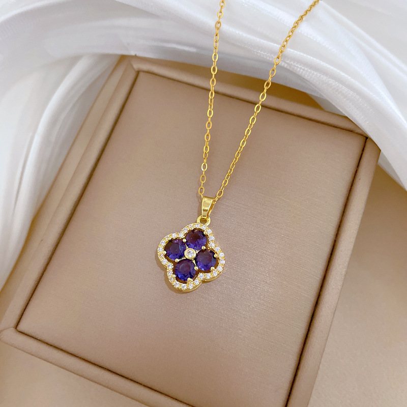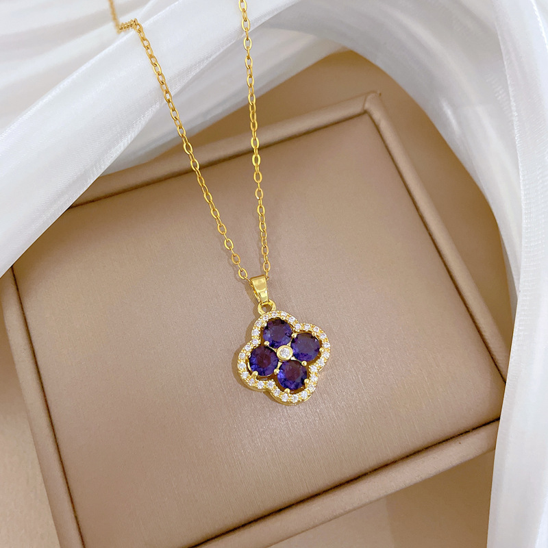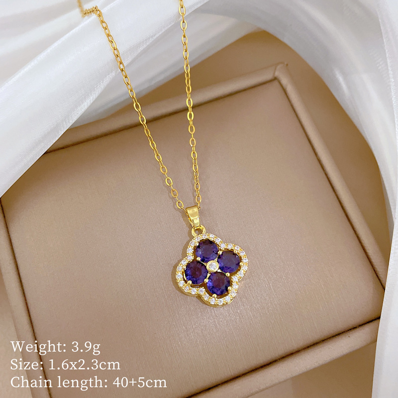 【钛钢】奢华满钻花朵微镶钻项链女ins网红锁骨链配饰品 投诉