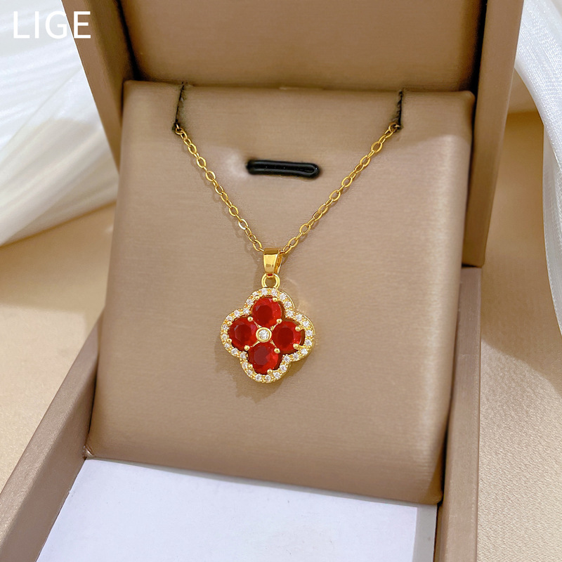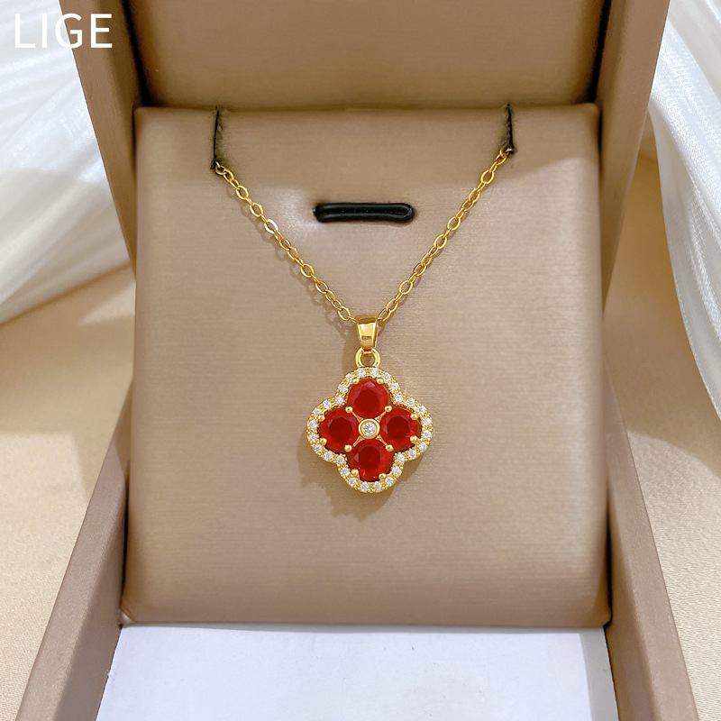 【钛钢】奢华满钻花朵微镶钻项链女ins网红锁骨链配饰品