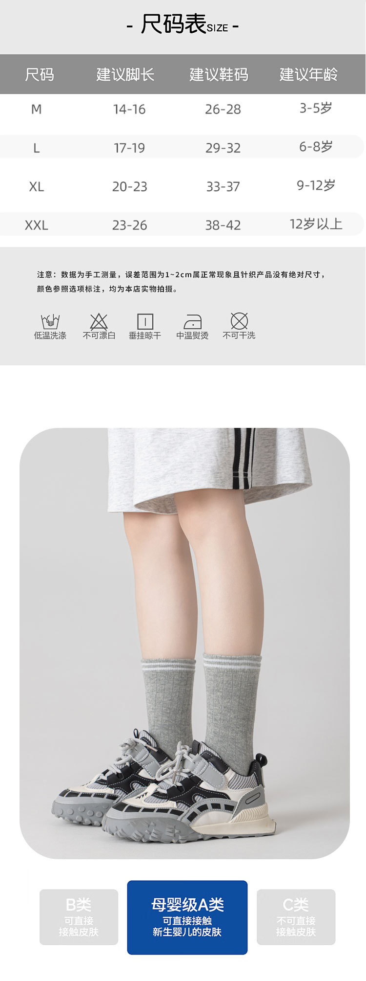 | XL码 9-12岁【建议鞋码33-37码】 | ¥0 | 321401双可售 |