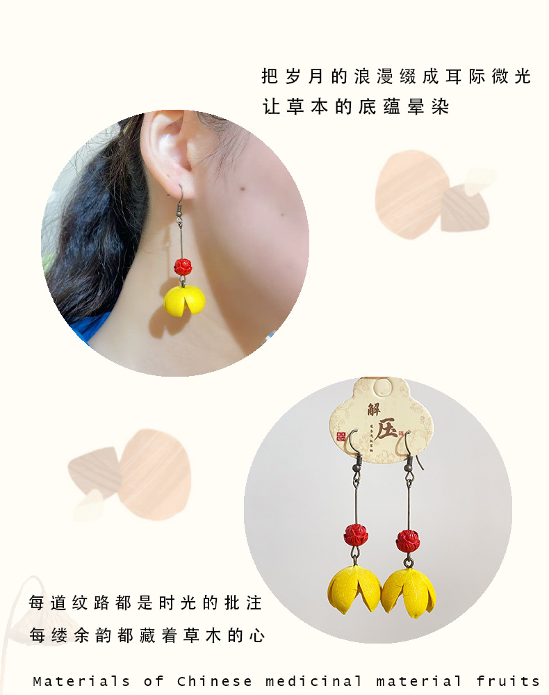 创意耳饰复古森系果实小众气质百搭木荷开口笑十字果女干果耳环女 投诉