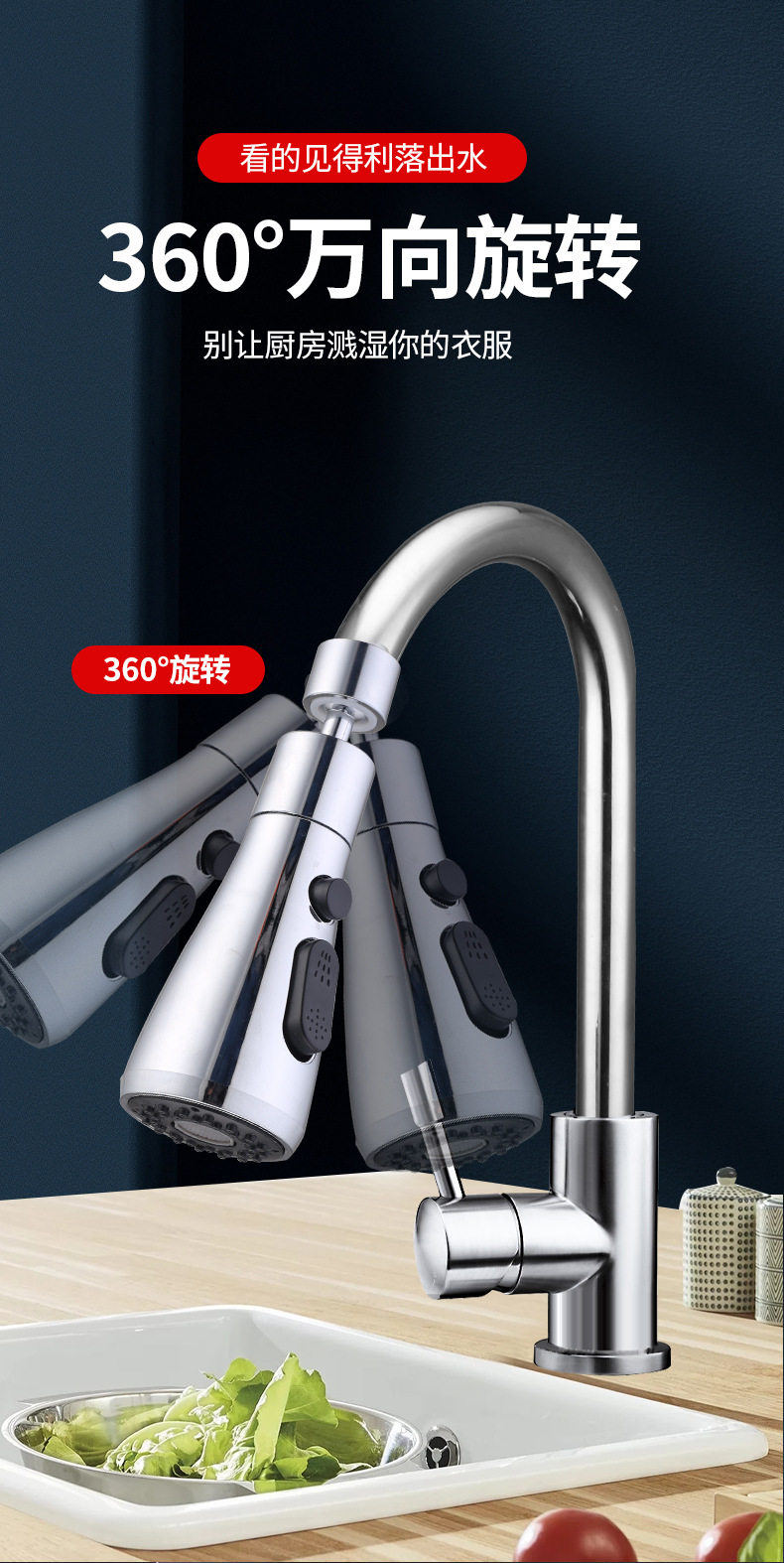 厨房洗菜盆一键止水厨房龙头万向头水龙头防溅神器万向延伸器通用 English | 投诉