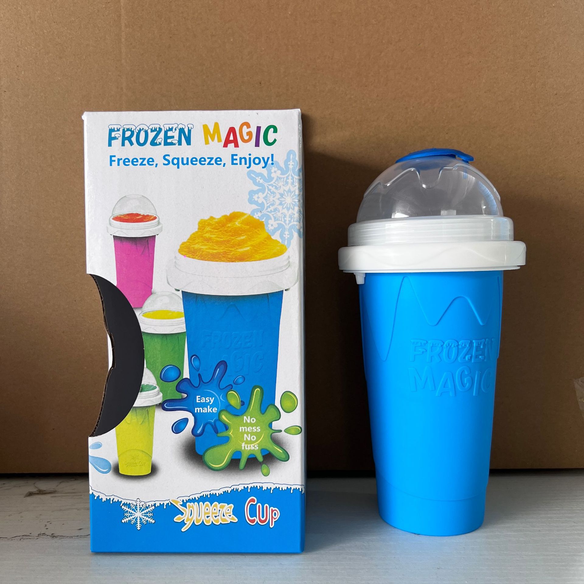 使用方法;冰箱冷冻6小时后倒入饮料反复捏即可出现沙冰