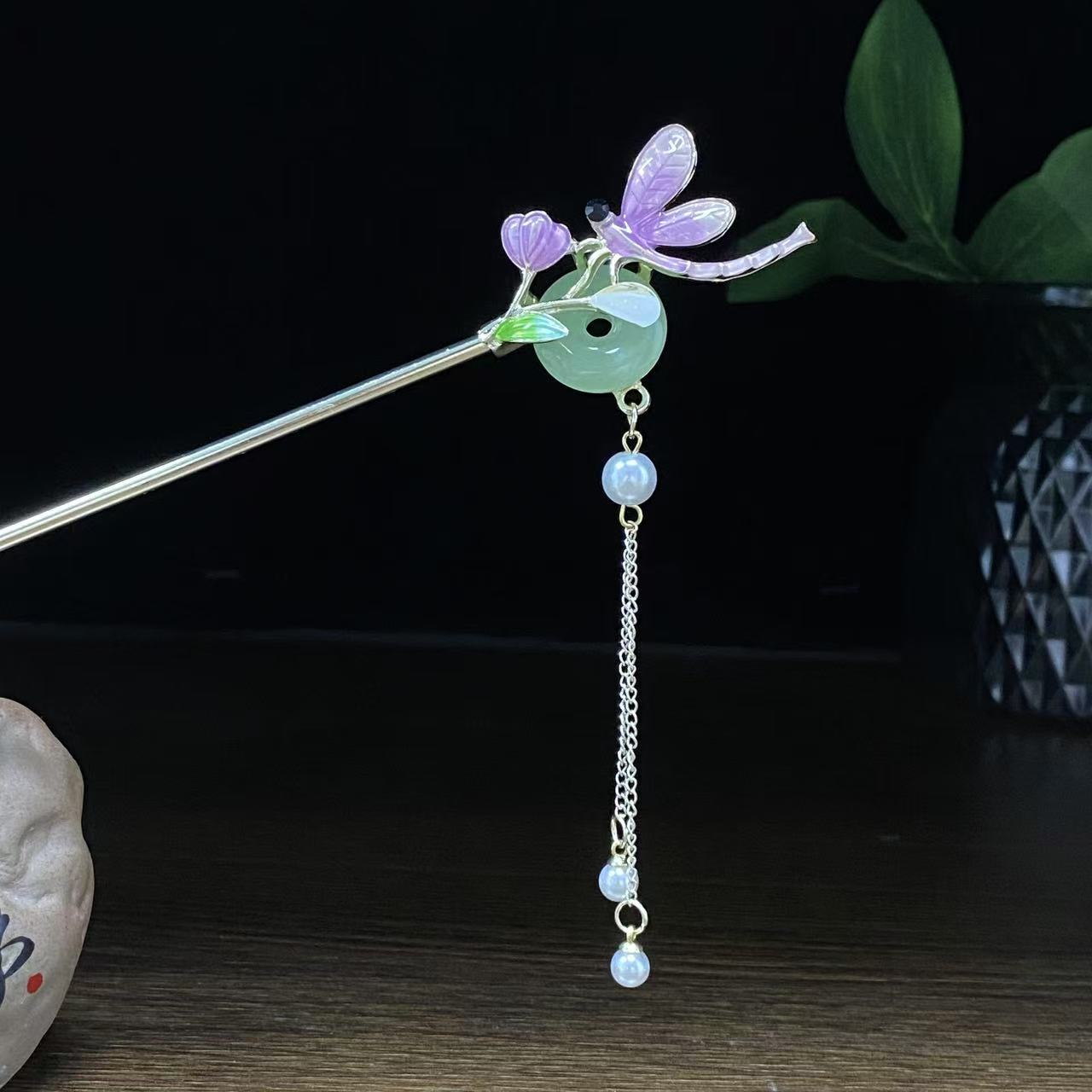 新中式平安扣蜻蜓发簪古风流苏簪子复古时尚精致百搭发钗花朵头饰