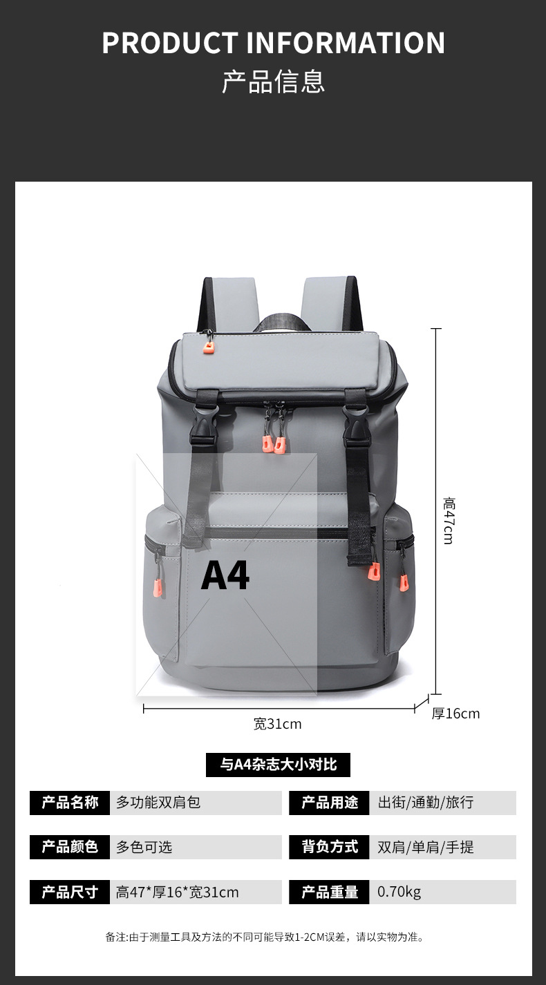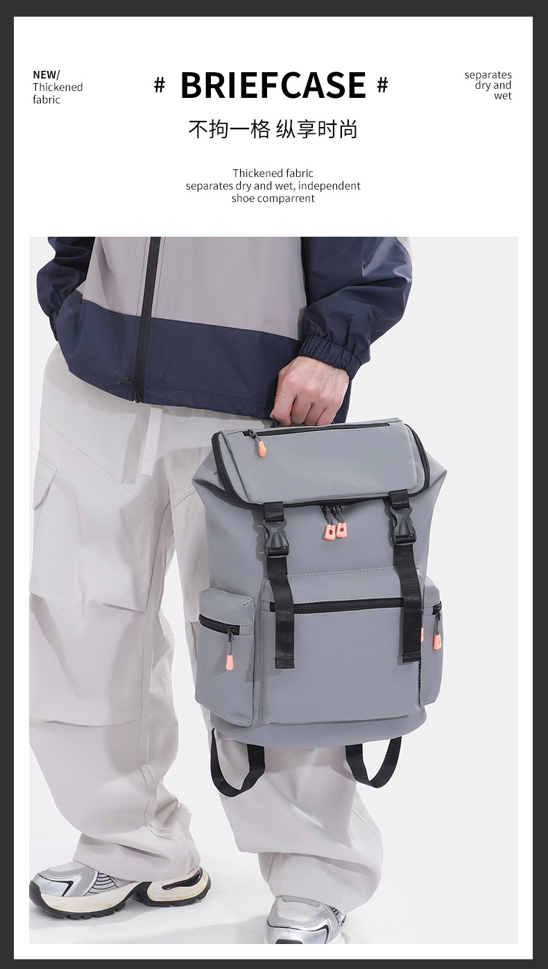 颜色: 黑色,深灰色,灰色,深蓝色 适用性别: 中性/男女均可 适用场景: 户外运动 材质: 尼龙 风格: 休闲旅行 品牌: .. 容量: 20-35L 功能: 透气 上市年份季节: 2025年春季 货号: 8023 图案: 纯色 里料质地: 涤纶 流行元素: 车缝线 有可授权的自有品牌: 否 1: 行李包大容量可放套拉杆上旅行手提出差小行 3: 健身包干湿分离男士健身训练包小号轻便款定 2: 旅行包短途女轻便高级感斜跨双肩可折叠单肩