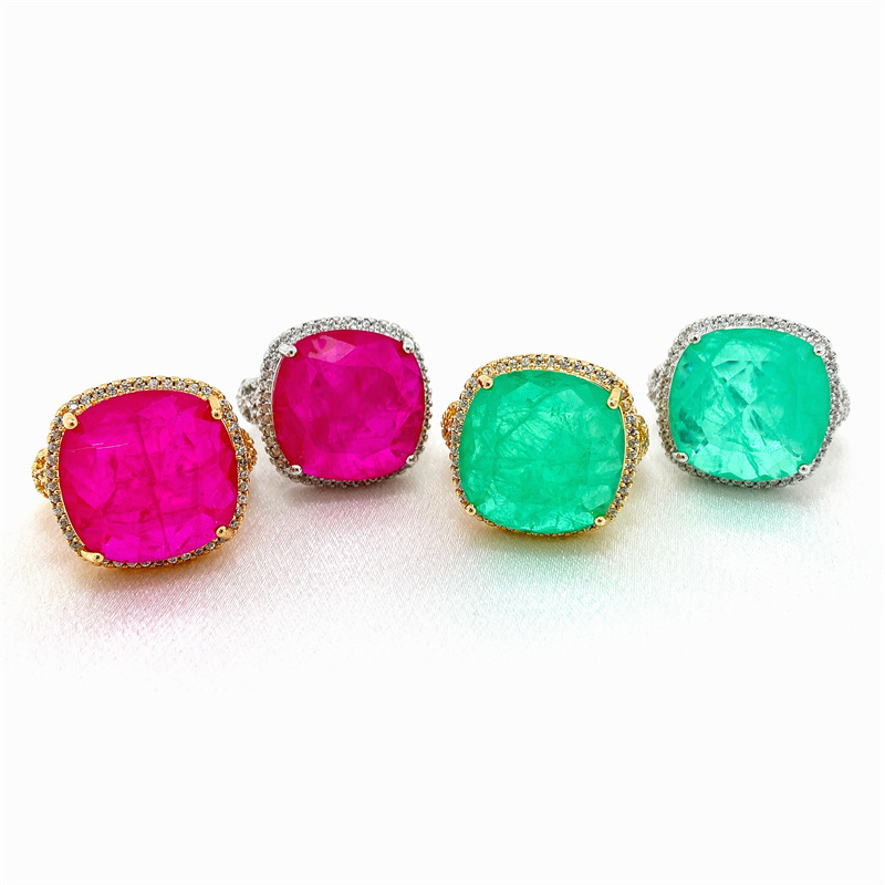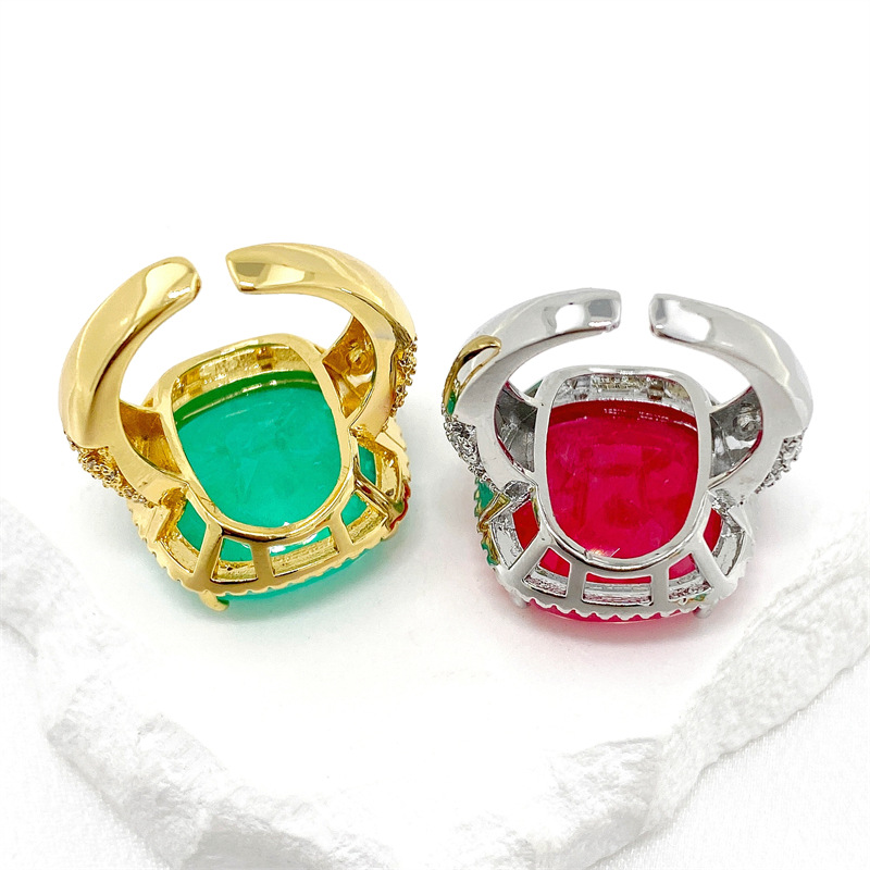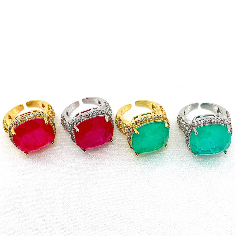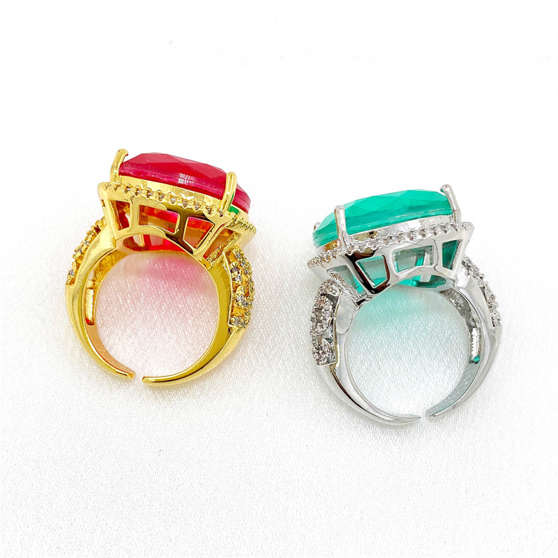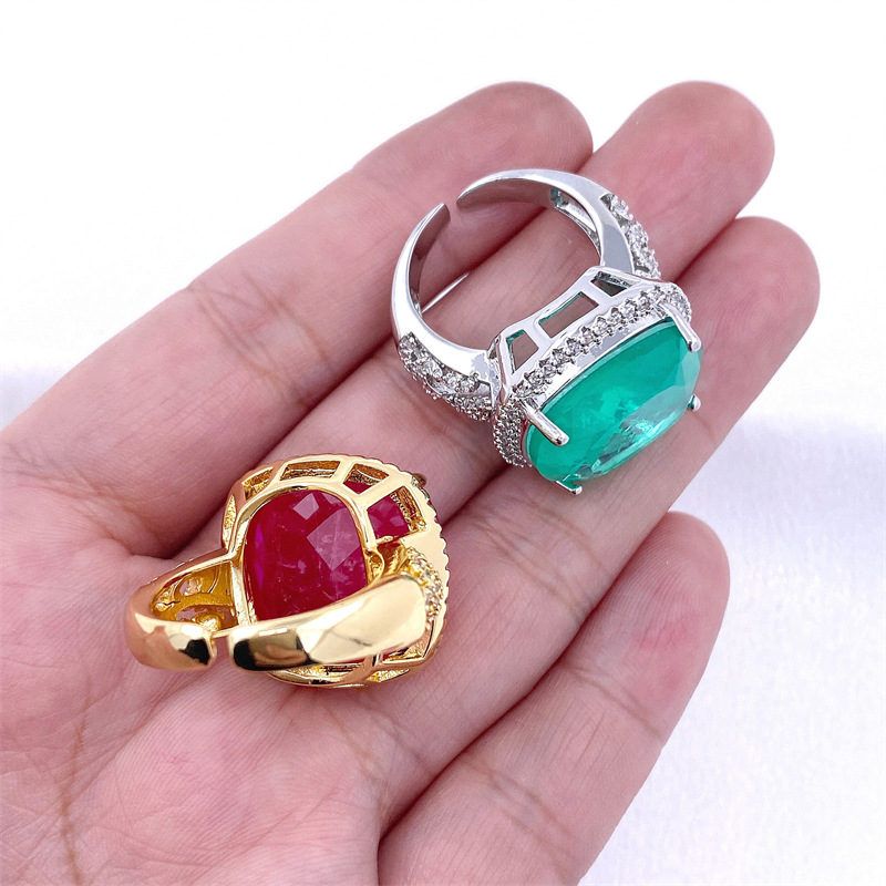 法式贵族铜镀微镶锆石彩宝女戒指ins热销宴会靓丽食指戒开口饰品 English | 投诉