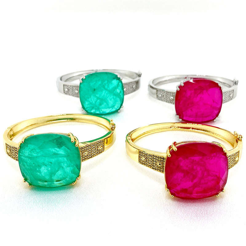ins新款欧美复古夸张彩宝微镶锆石铜镀手环大气时尚女士手镯配饰 English | 投诉