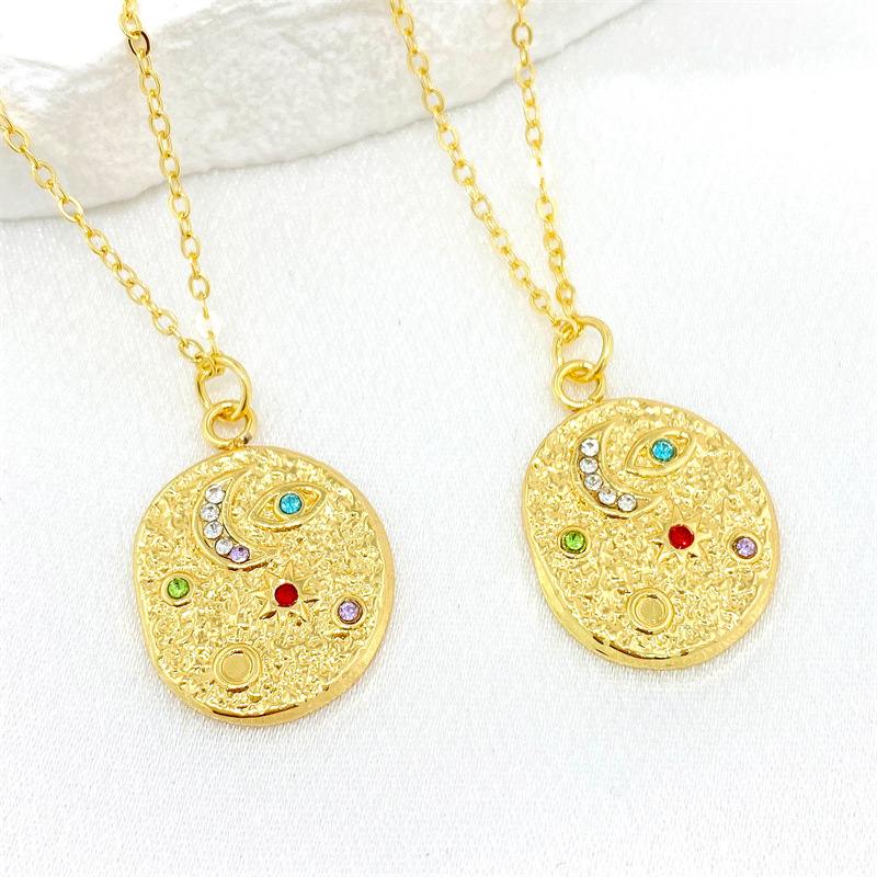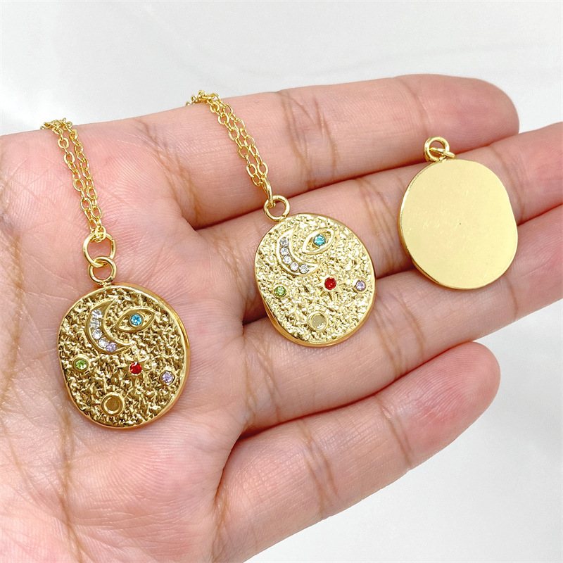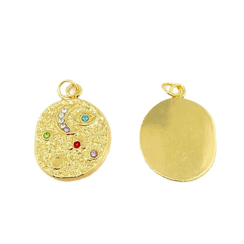 个性复古DIY微镶彩锆不锈钢吊坠设计感月亮太阳眼睛图案项链配件 English | 投诉