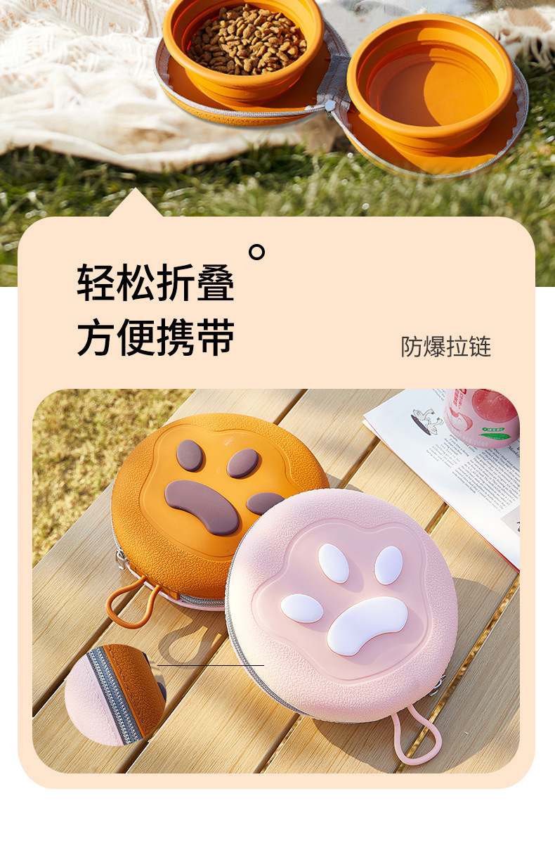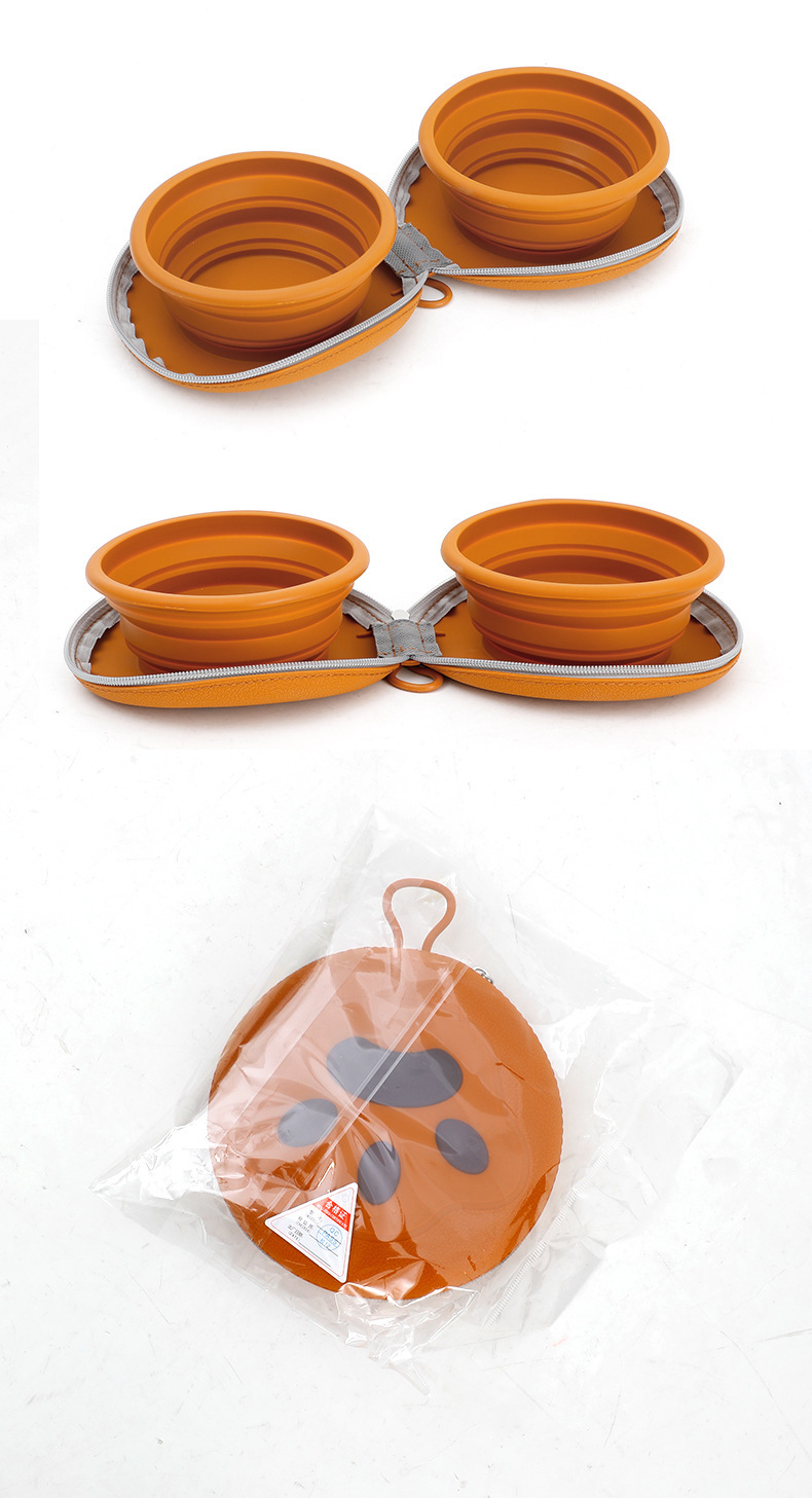 跨境新款宠物可折叠软硅胶碗户外便携式遛狗碗旅行宠物二合一双碗 投诉