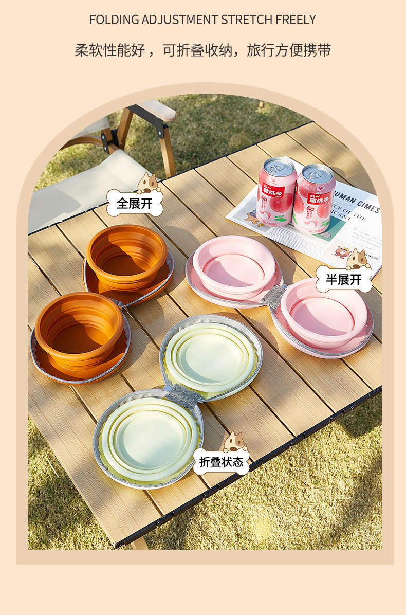 跨境新款宠物可折叠软硅胶碗户外便携式遛狗碗旅行宠物二合一双碗