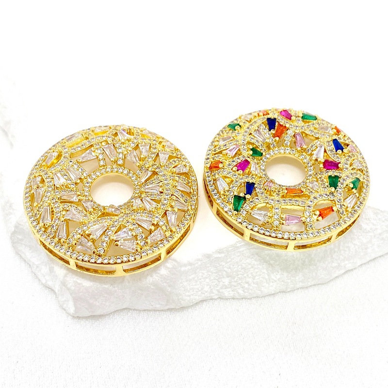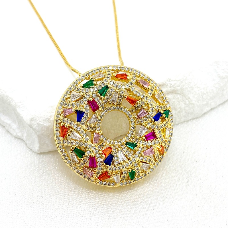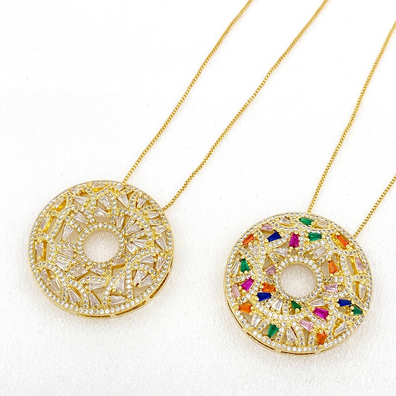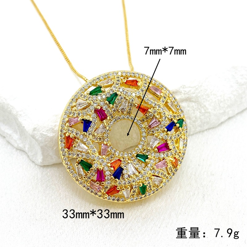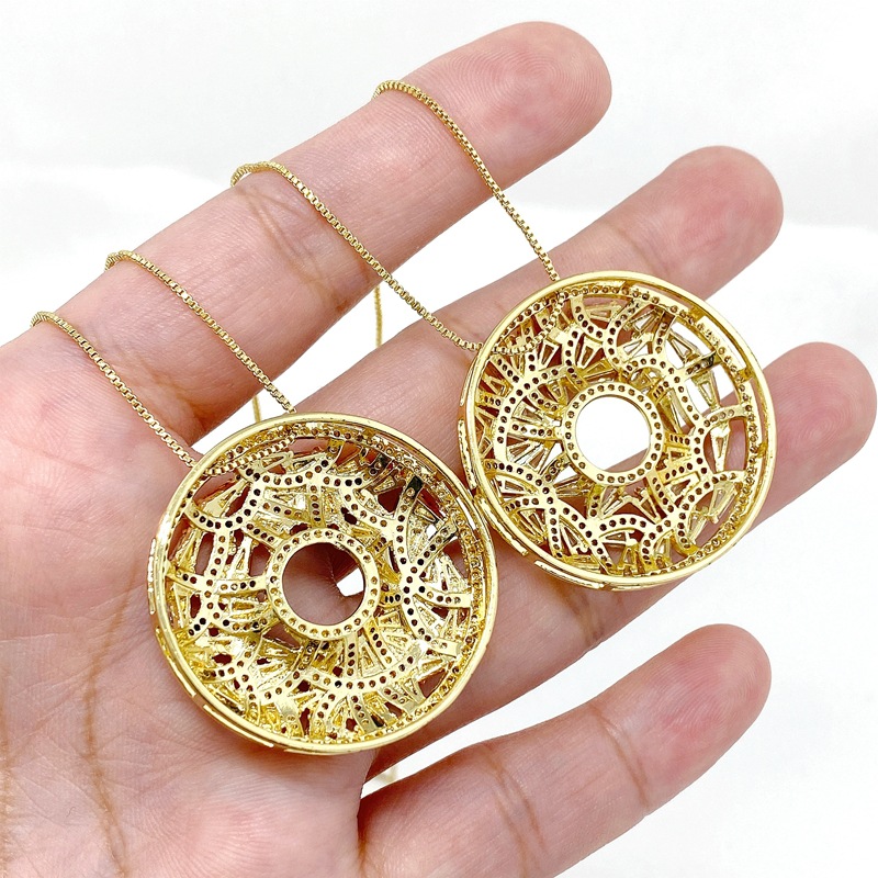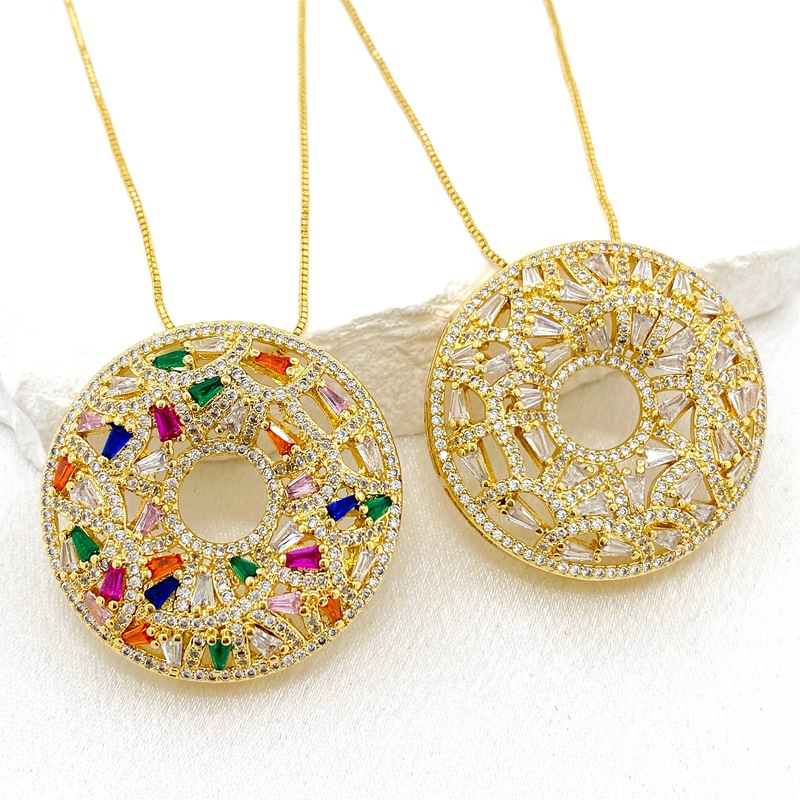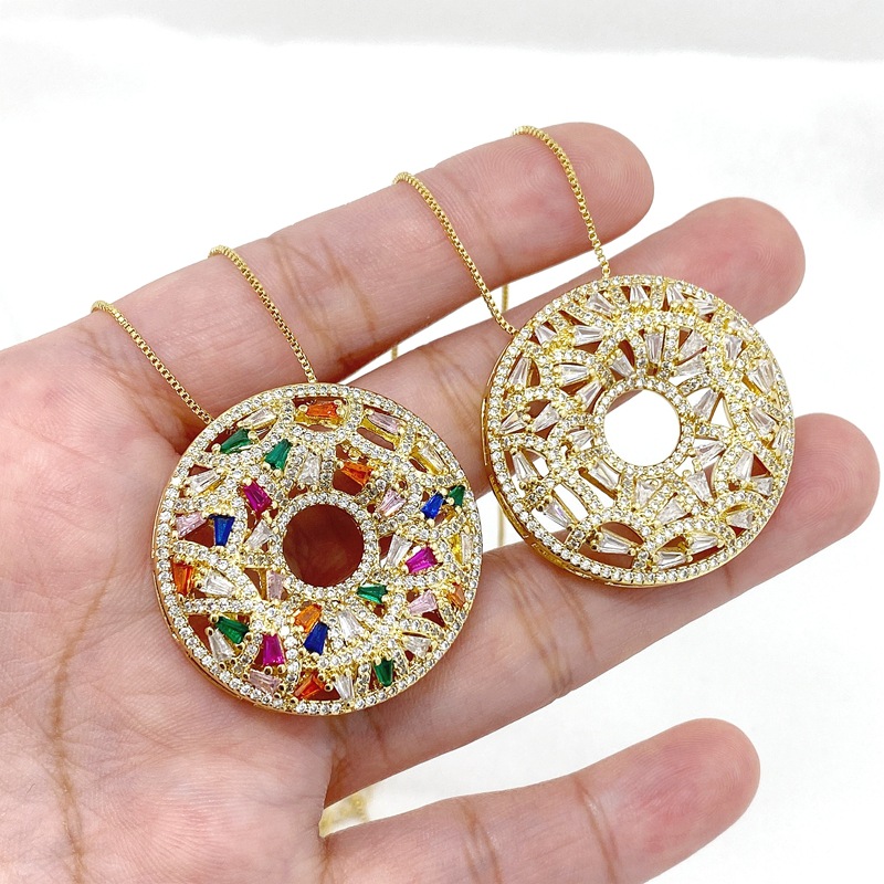 跨境新款铜镀金锆石甜甜圈形宽大吊坠欧美风网红博主项链挂件批发 English | 投诉