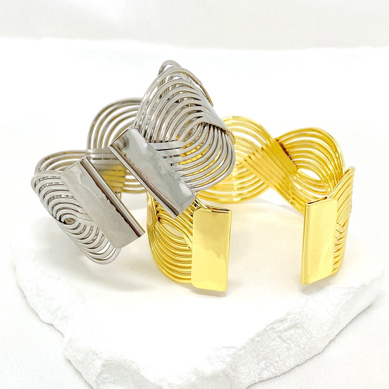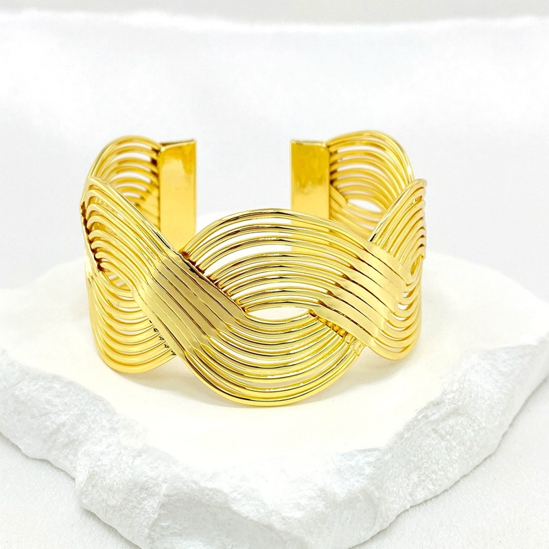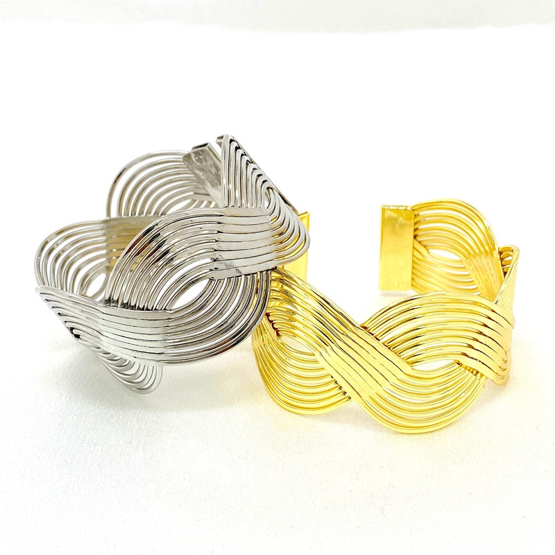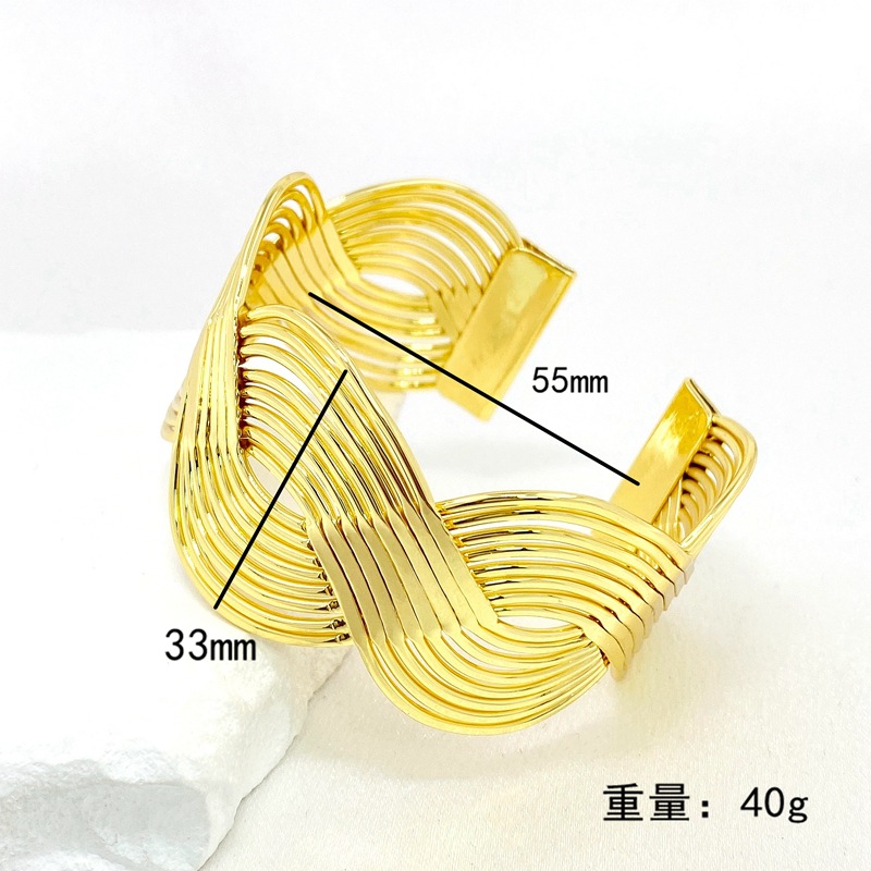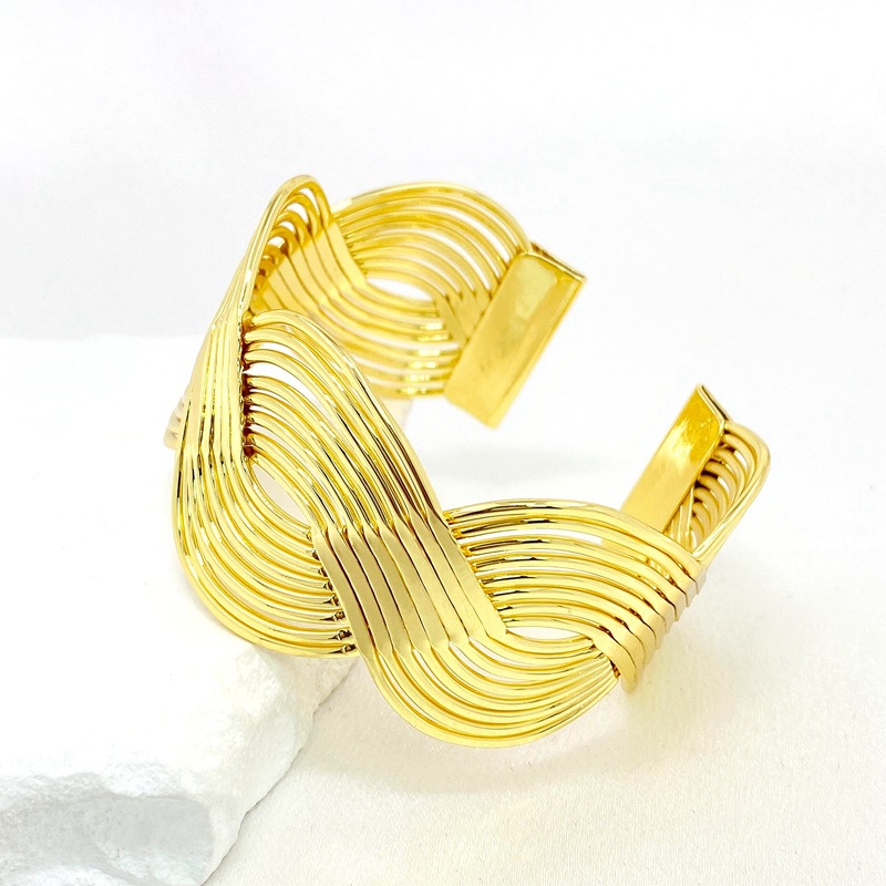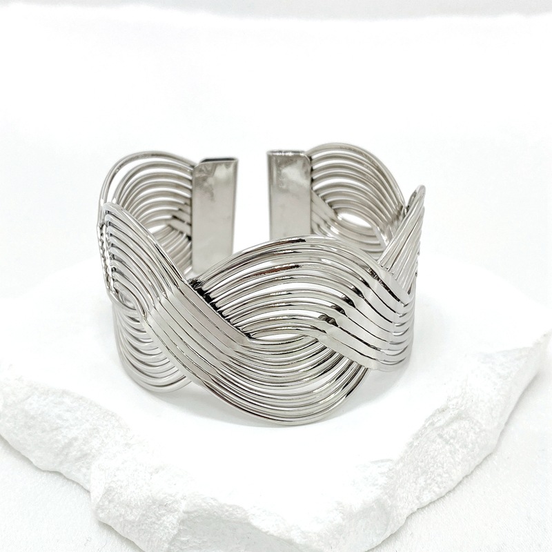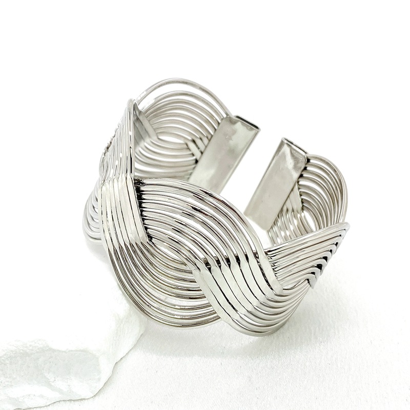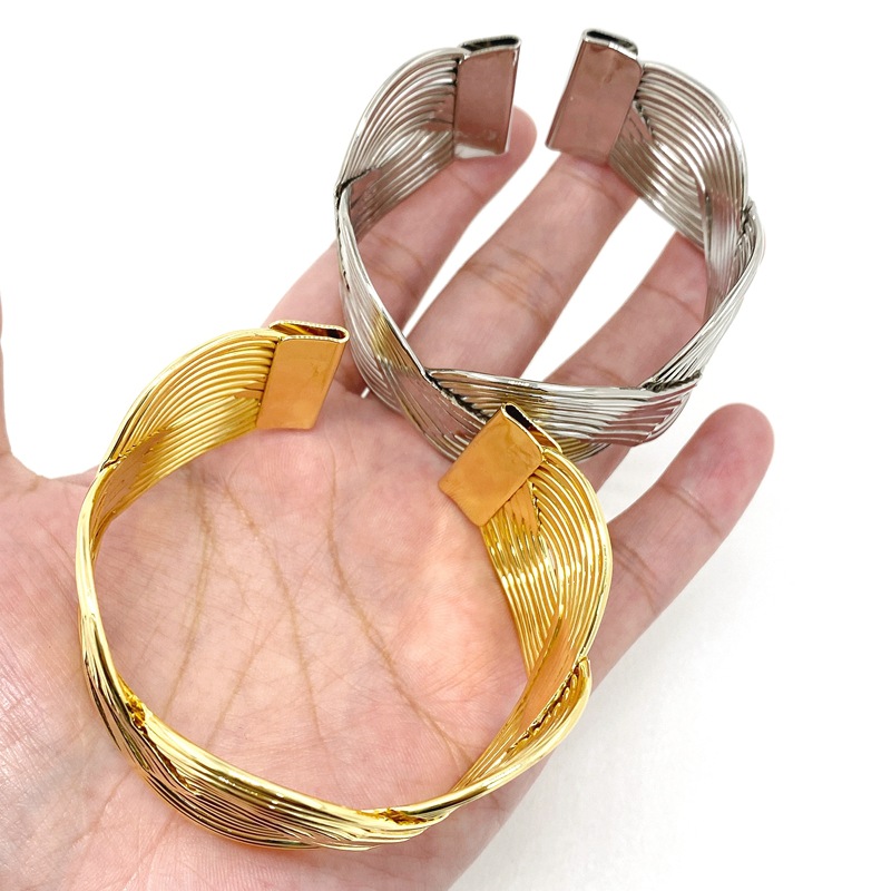 新款欧美跨境个性宽版缠绕交叉夸张手镯质感编织女式开口手环批发 English | 投诉