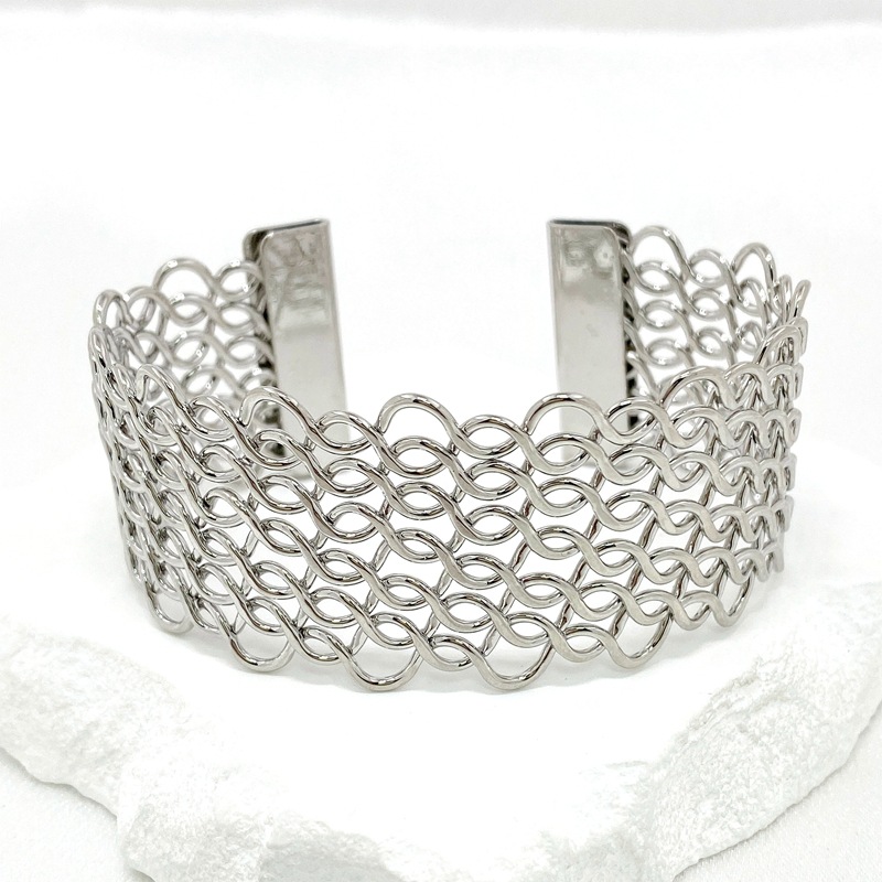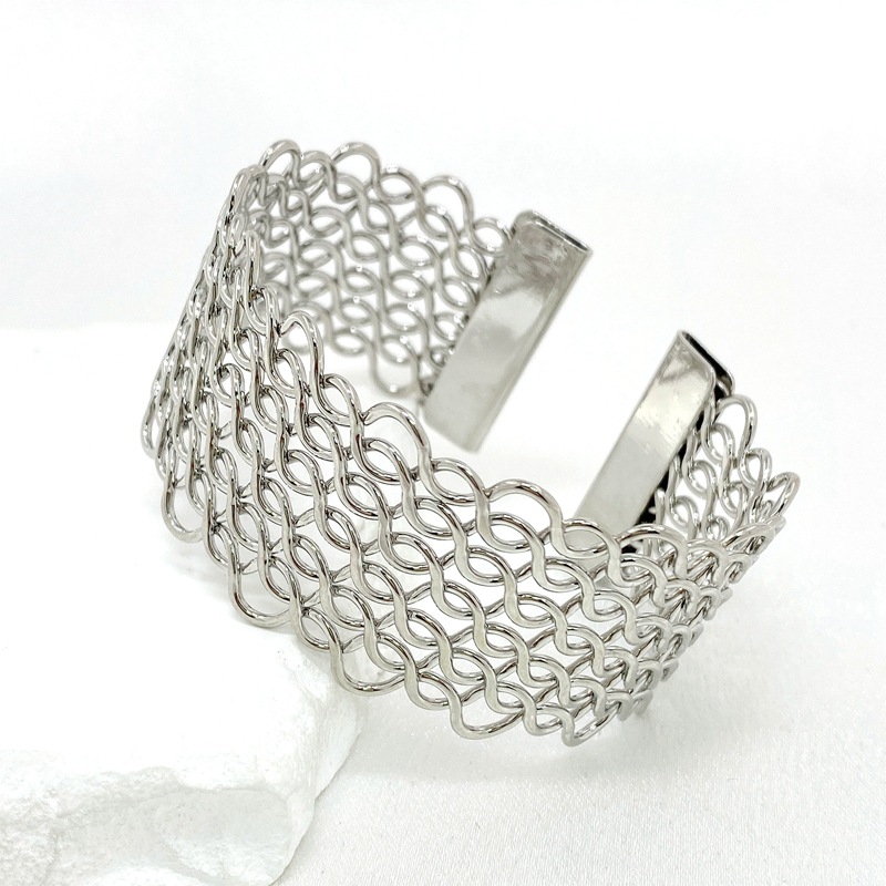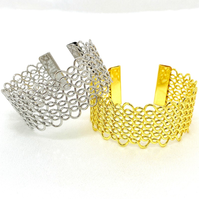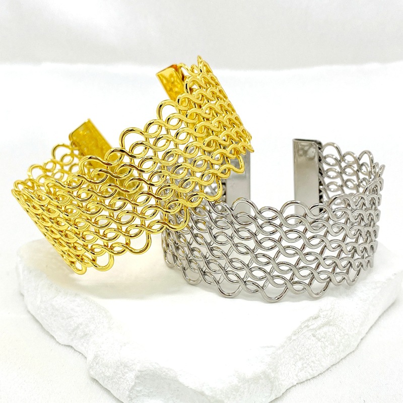 外贸新款韩版简约潮流麻花手环女式欧美镂空宽版夸张开口手镯批发