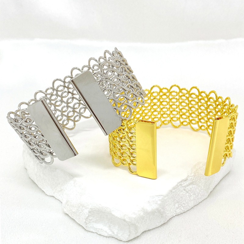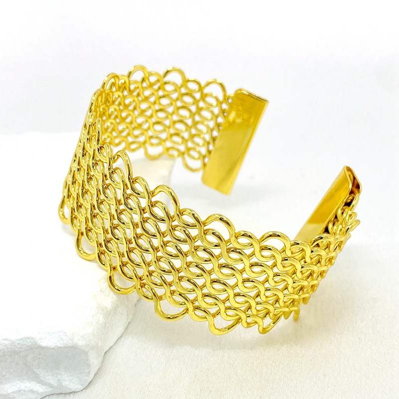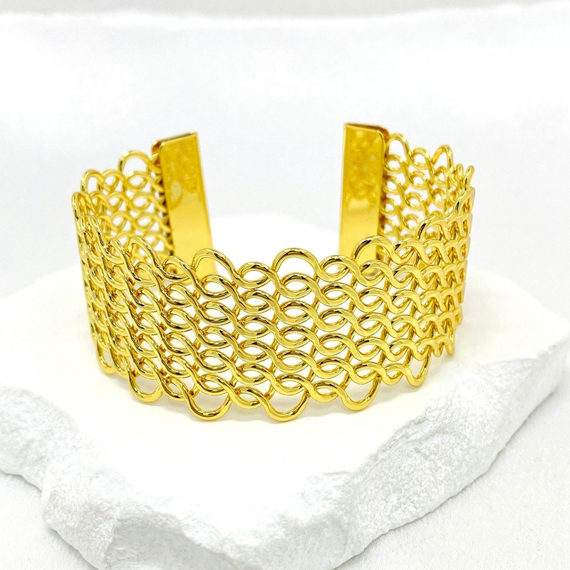外贸新款韩版简约潮流麻花手环女式欧美镂空宽版夸张开口手镯批发 English | 投诉