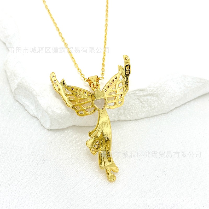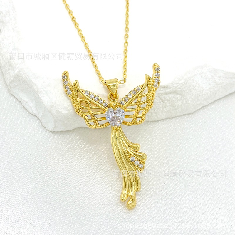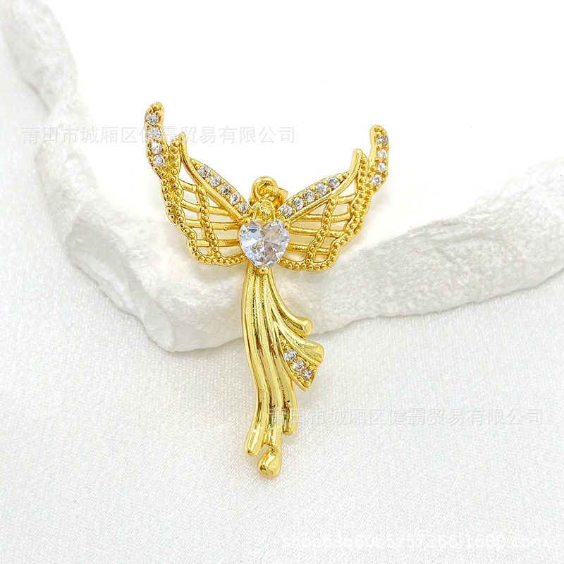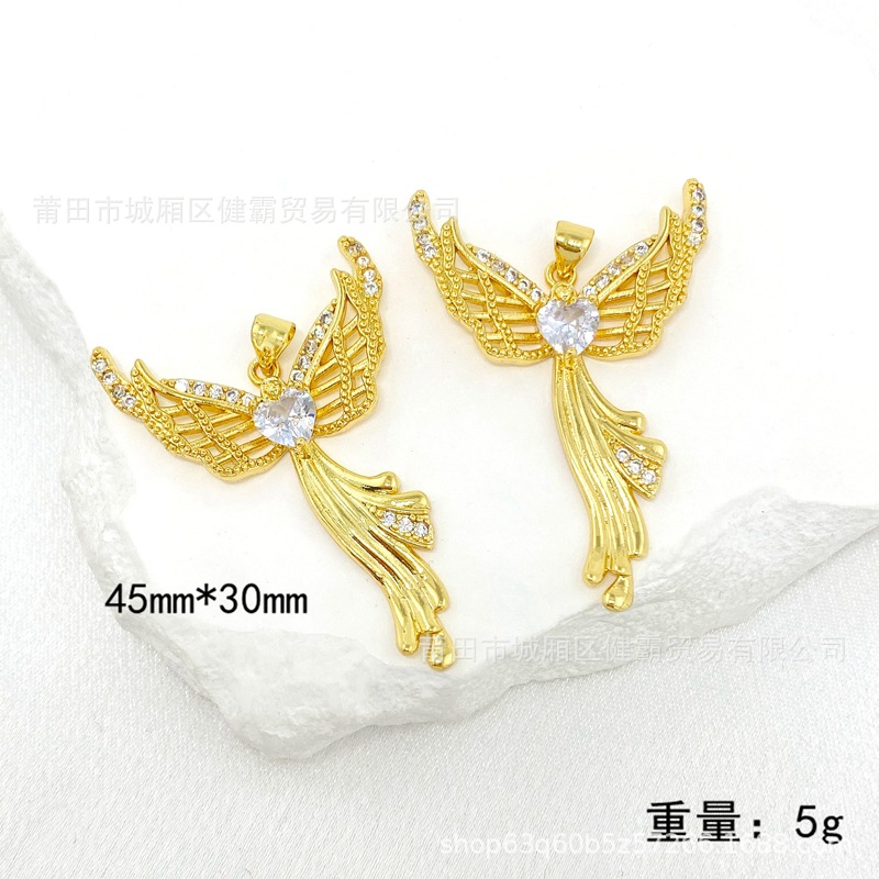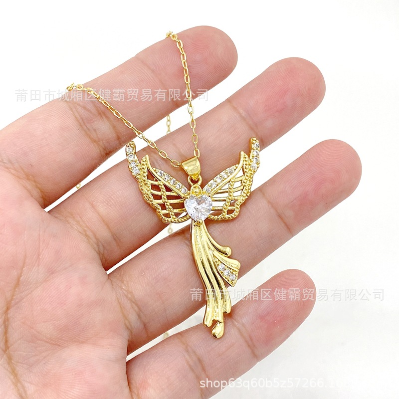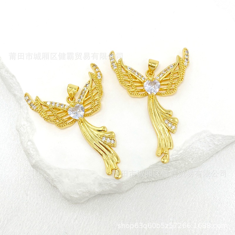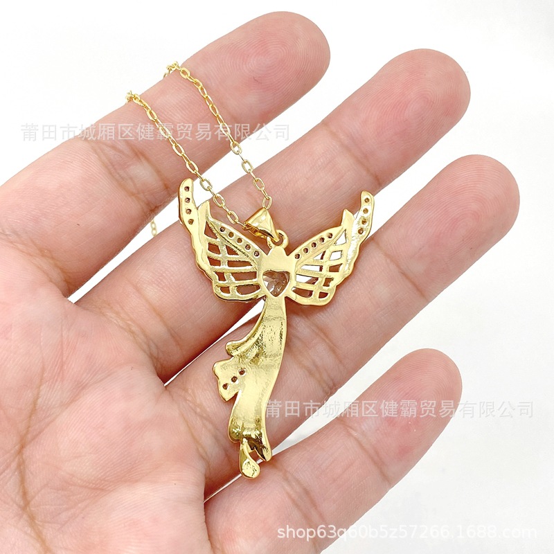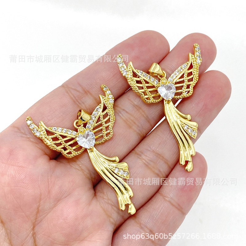 欧美热销新款个性百搭天使爱心守护翅膀微镶锆气质女吊坠 English | 投诉