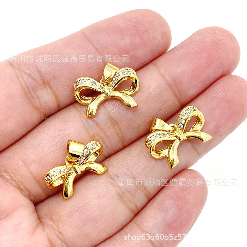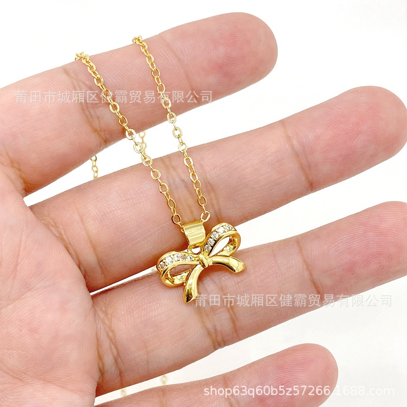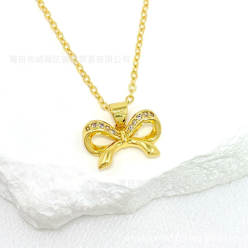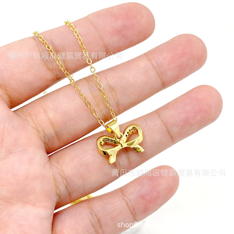 简约韩版气质轻奢蝴蝶结镶锆电镀吊坠女士饰品