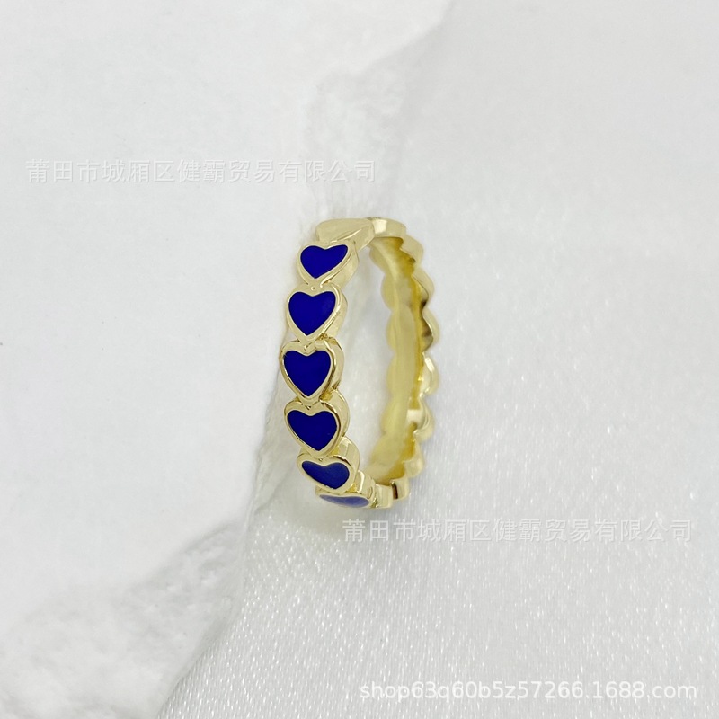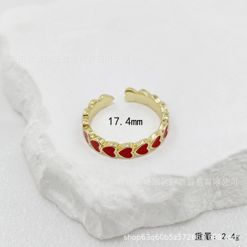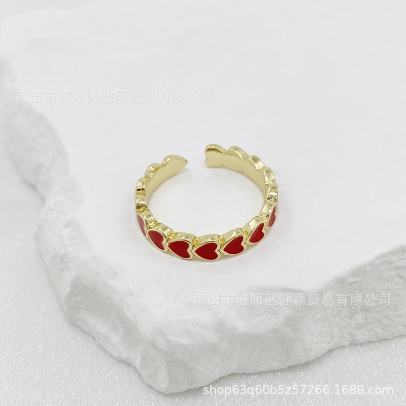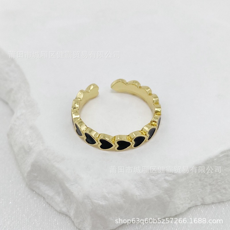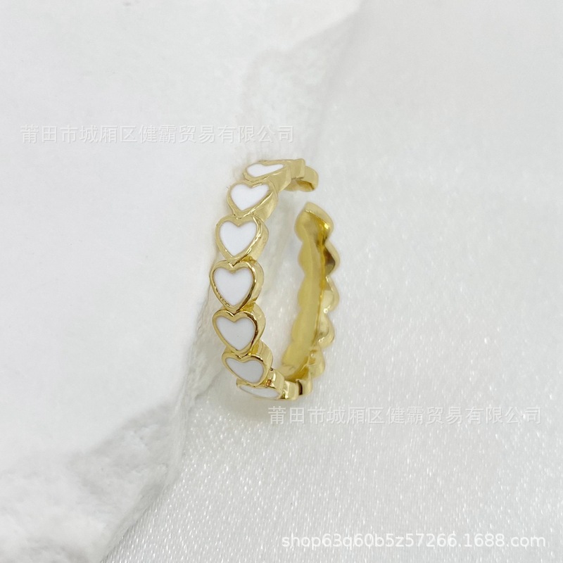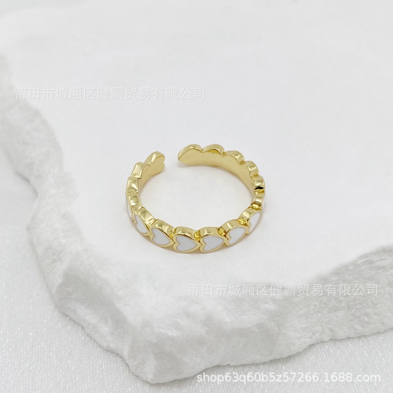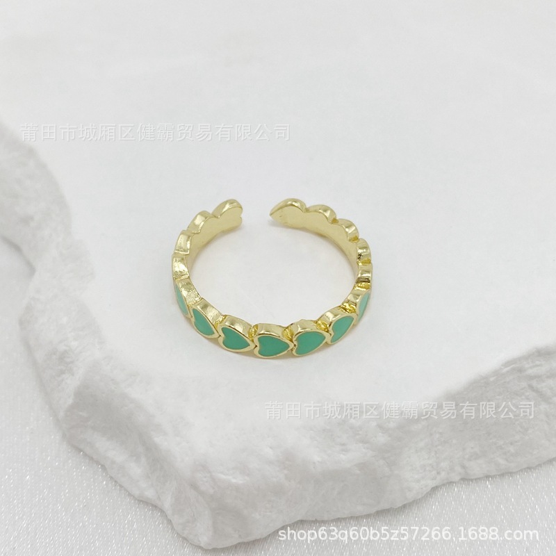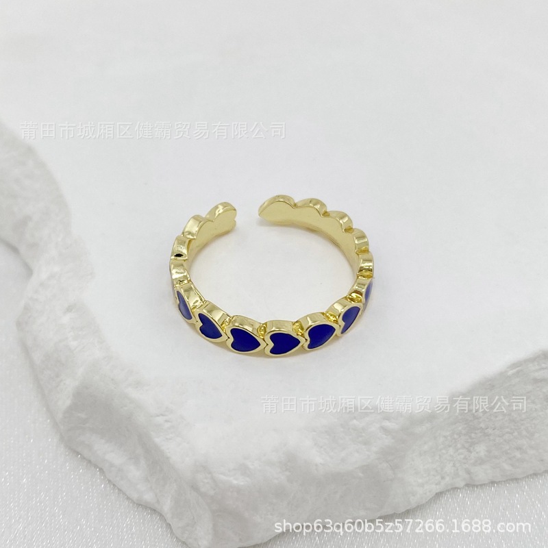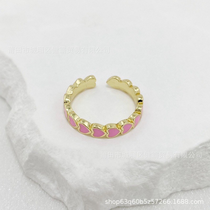 欧美新款滴油彩色爱心DIY个性开口可调节指环精致百搭潮流饰品