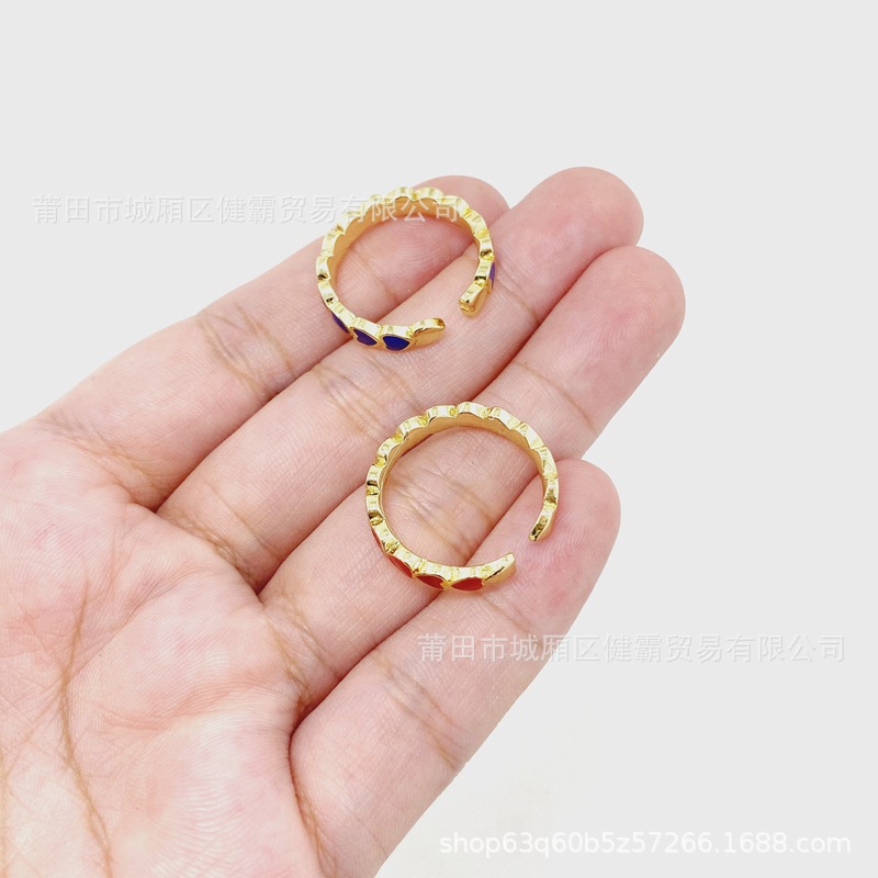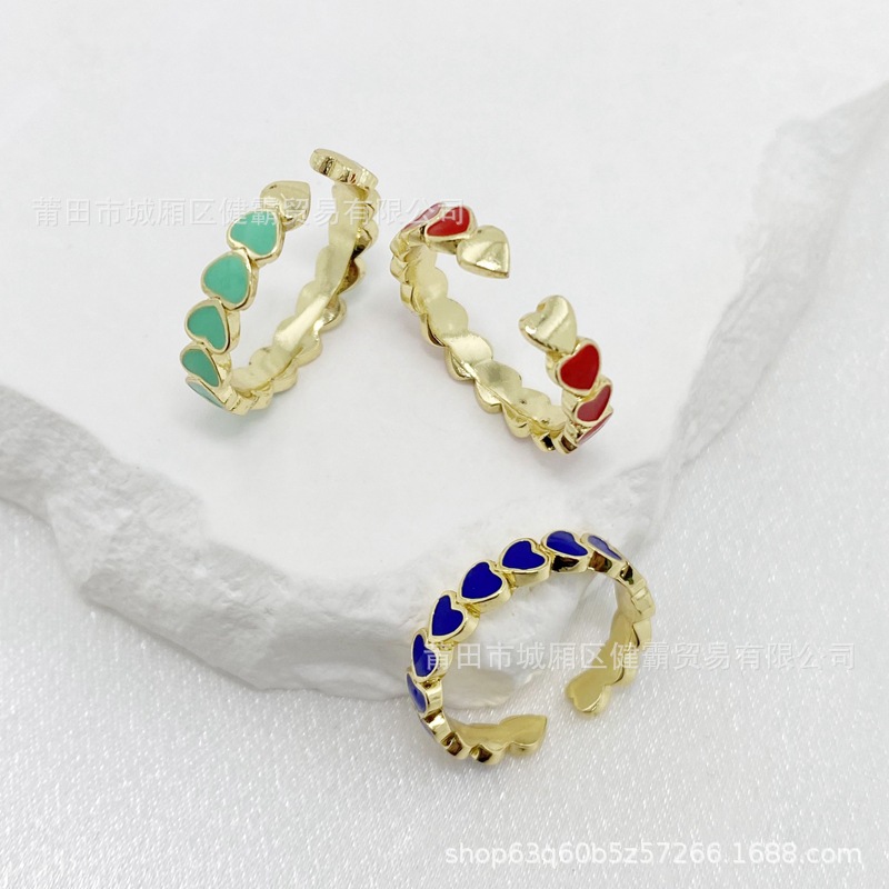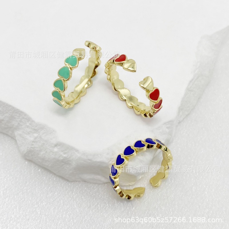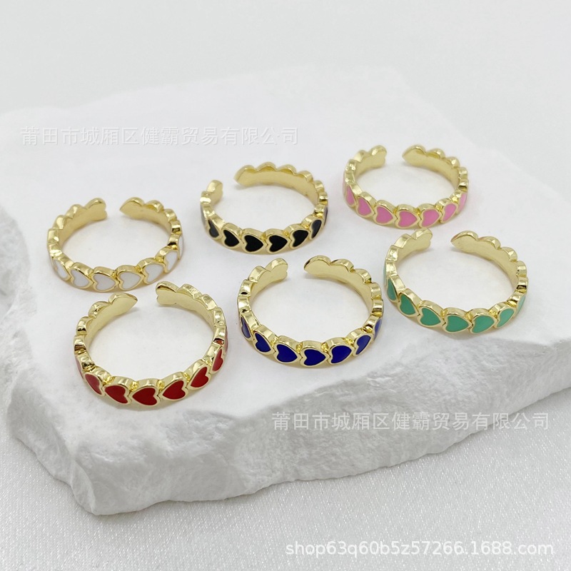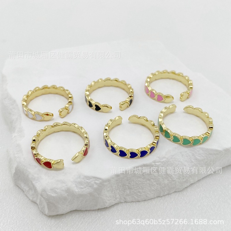 欧美新款滴油彩色爱心DIY个性开口可调节指环精致百搭潮流饰品 English | 投诉