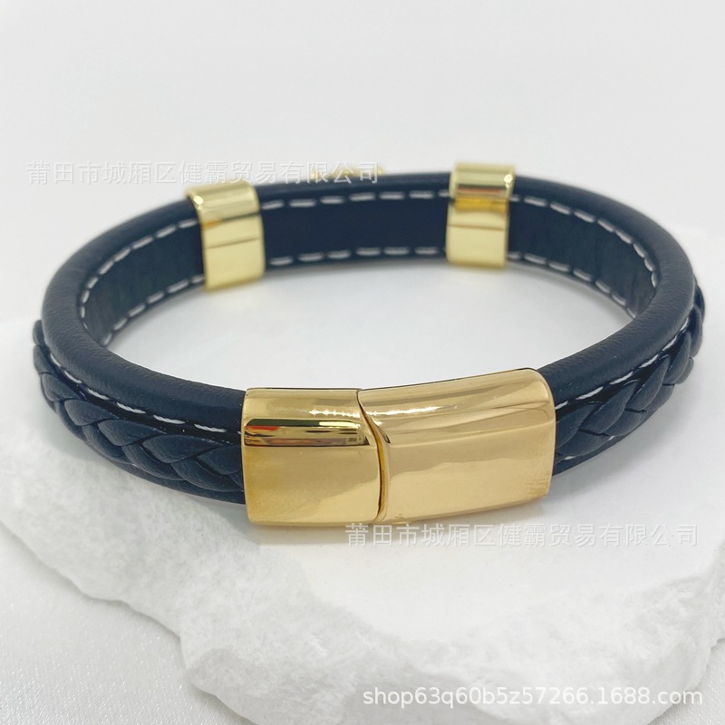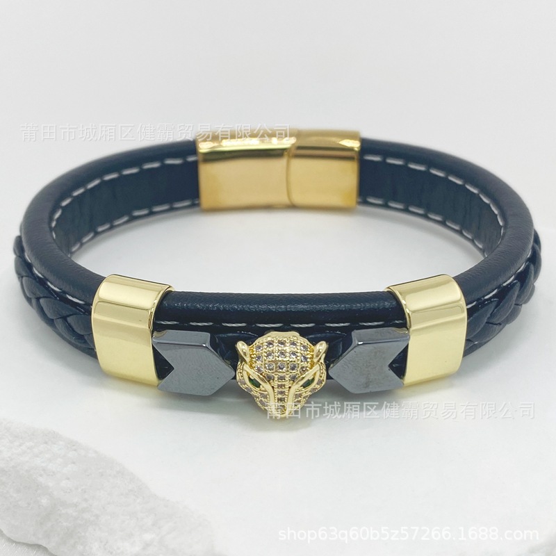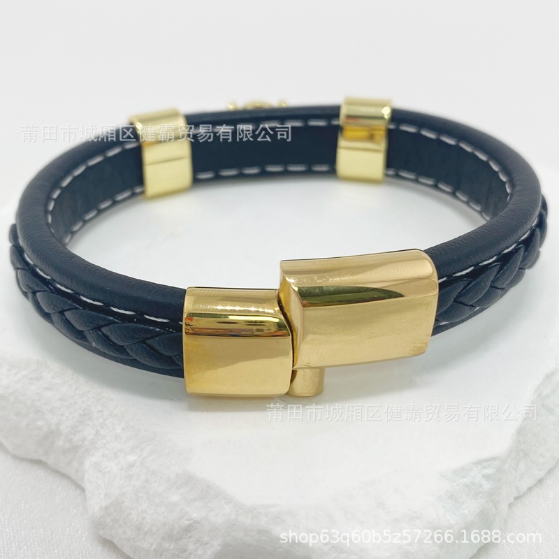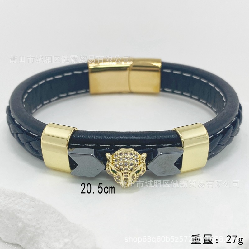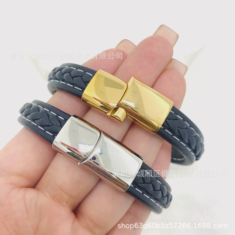 时尚编织皮绳手镯手链欧美流行复古铜扣男女手环 English | 投诉