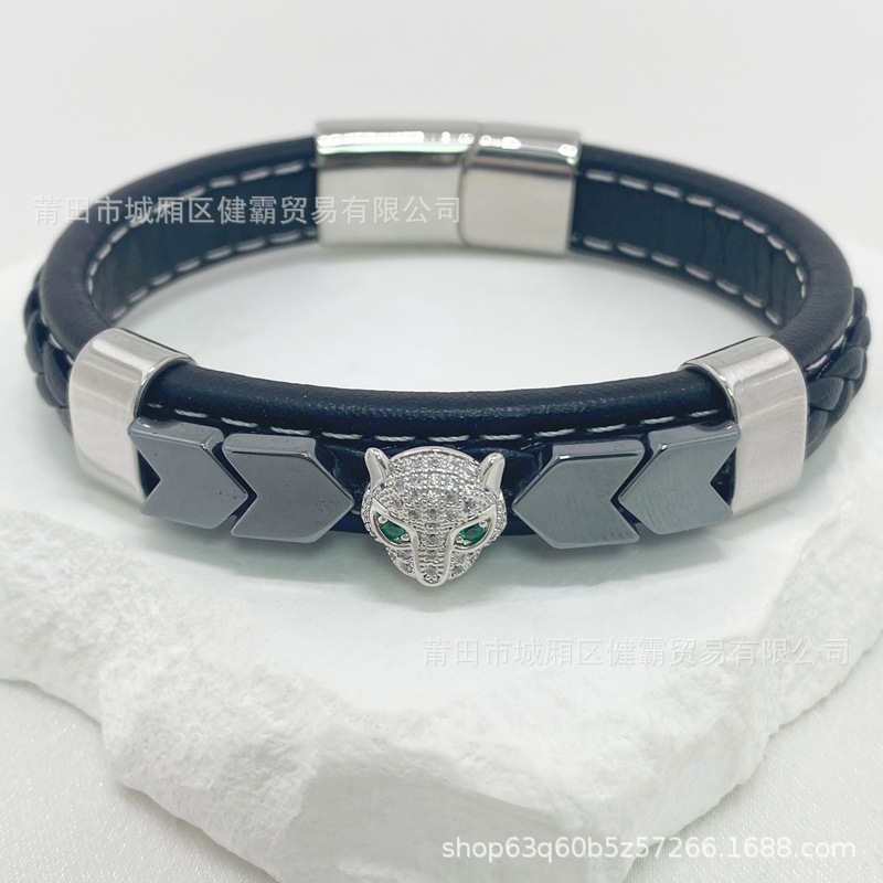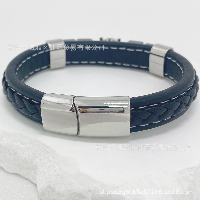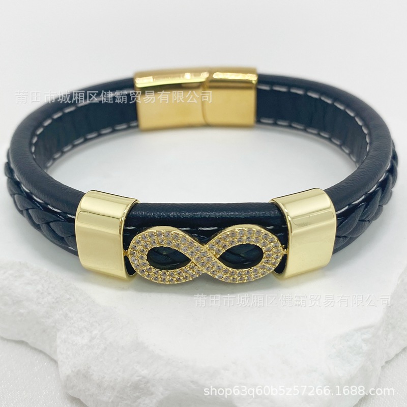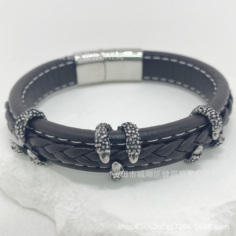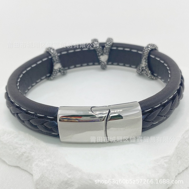 时尚编织皮绳手镯手链欧美流行复古铜扣男女手环 English | 投诉
