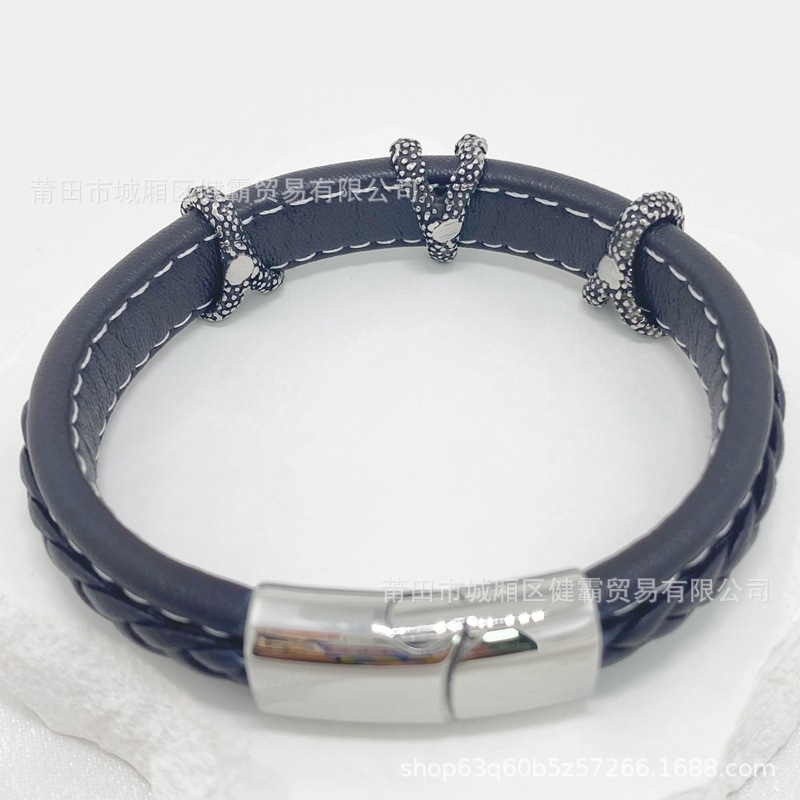 时尚编织皮绳手镯手链欧美流行复古铜扣男女手环