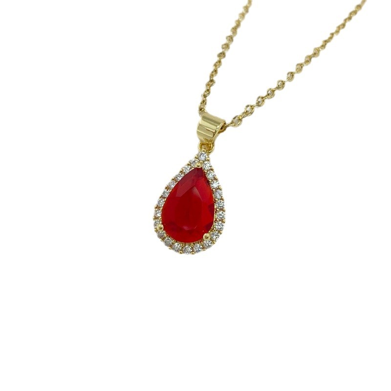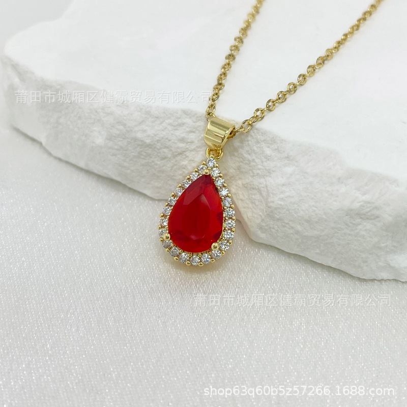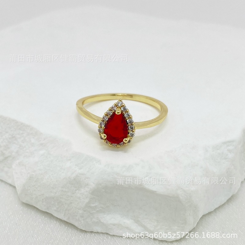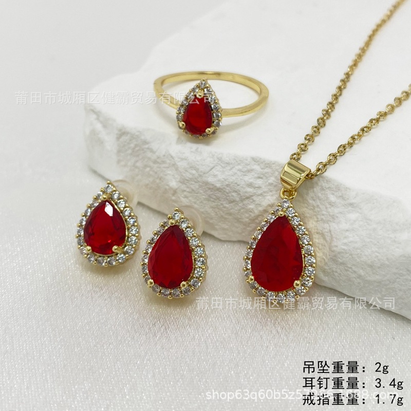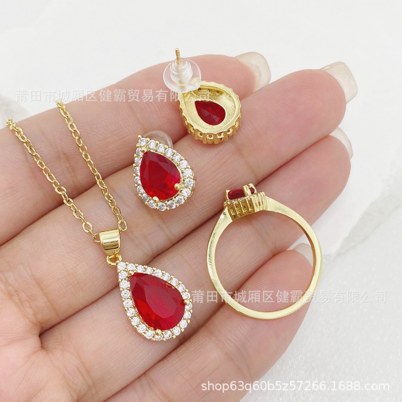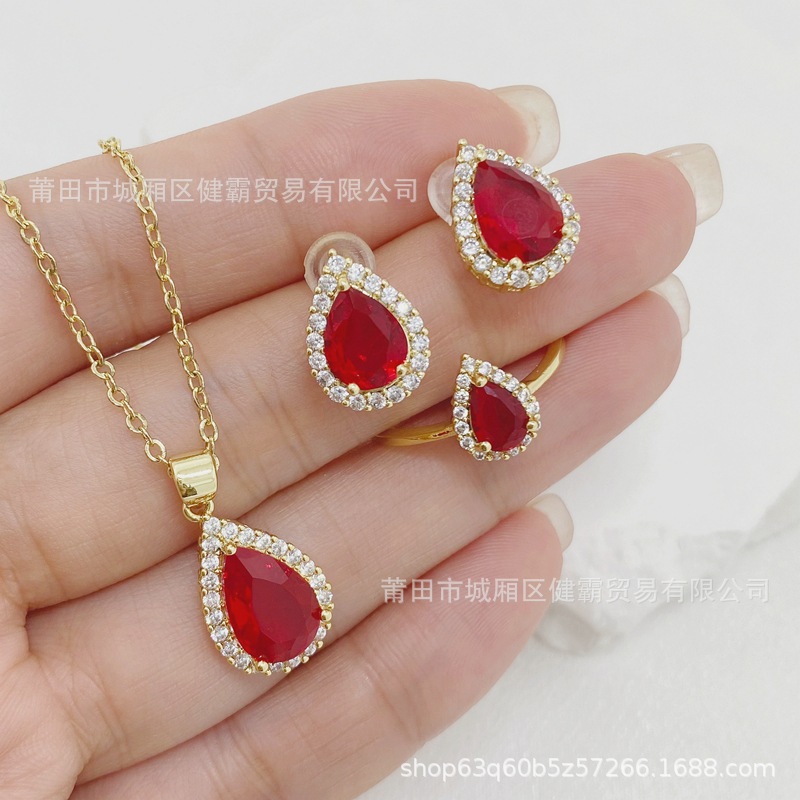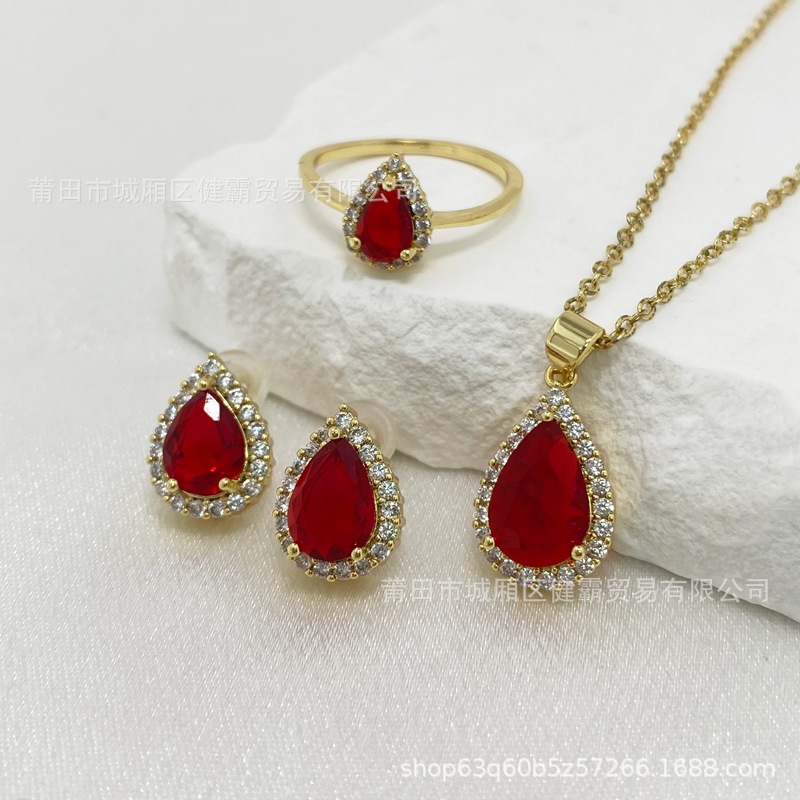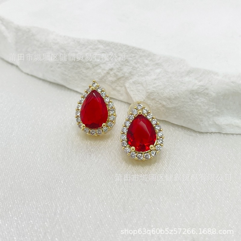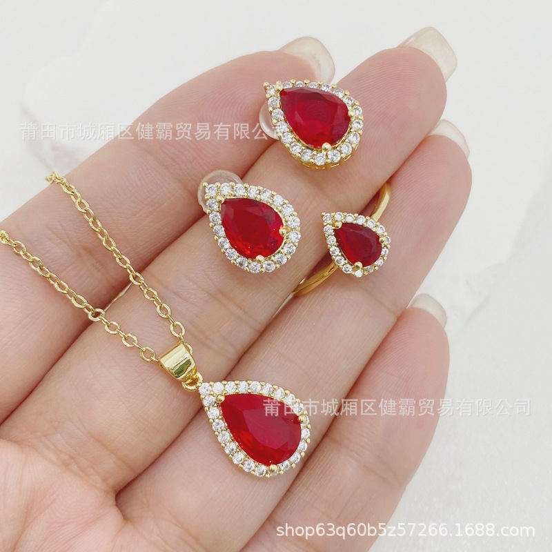 轻奢国潮首饰复古水滴形红锆石吊坠女士时尚简约耳钉戒指配饰 English | 投诉