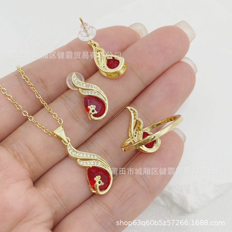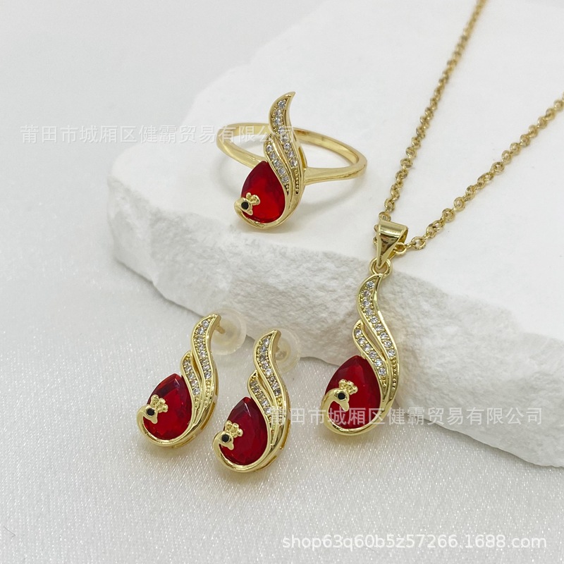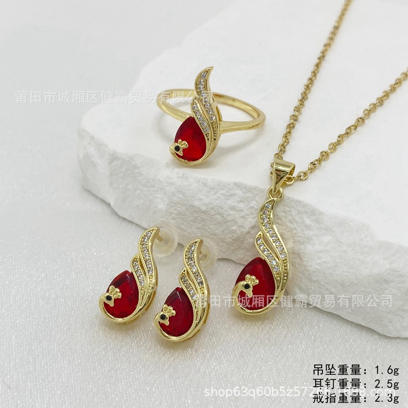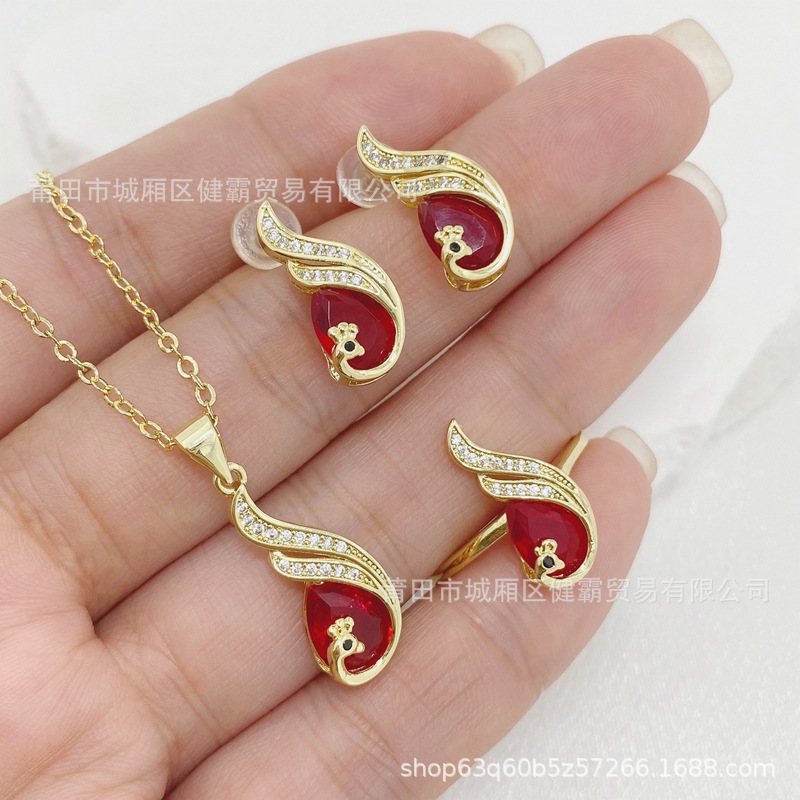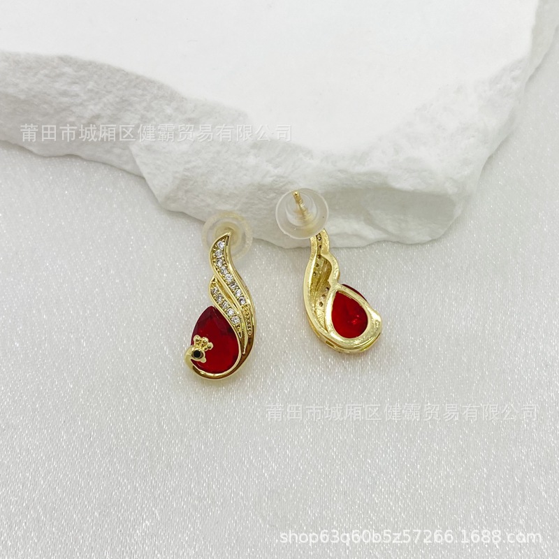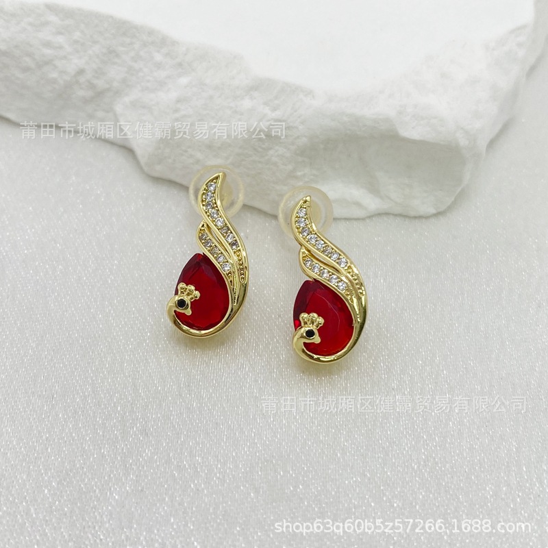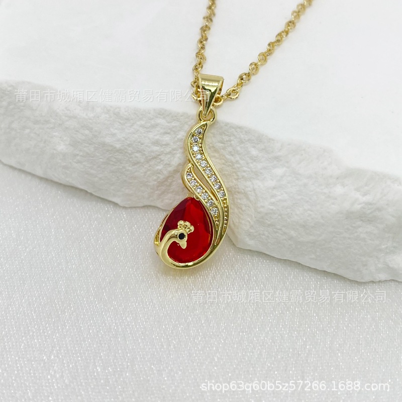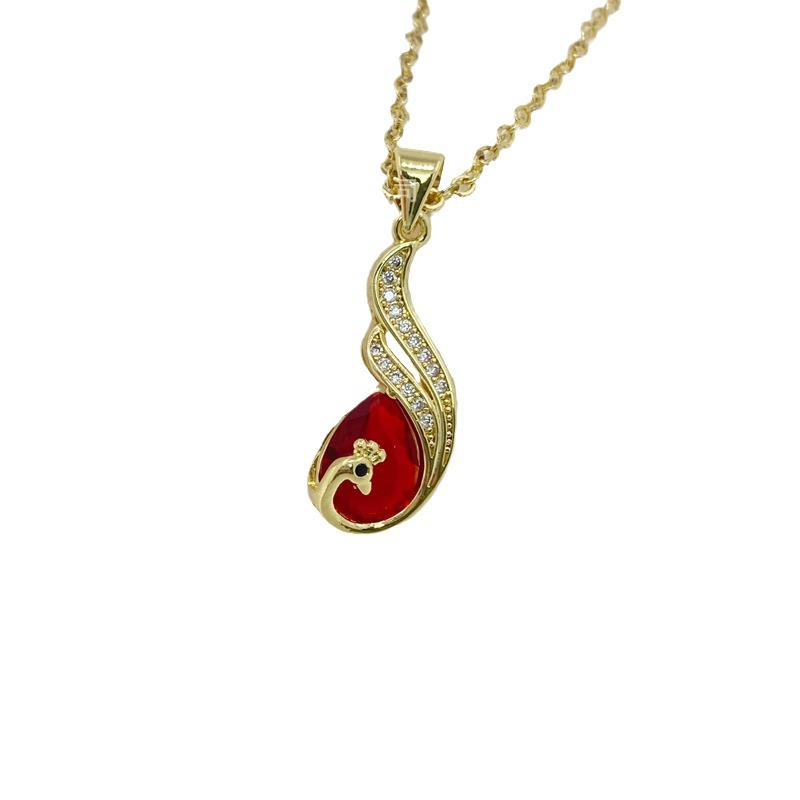 比翼双飞孔雀复古国风红锆石女吊坠轻奢喜庆首饰 English | 投诉