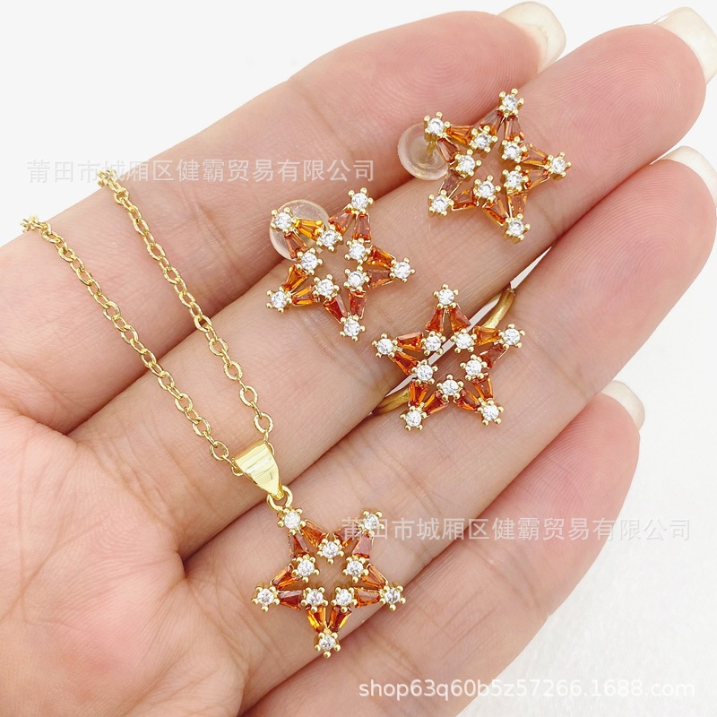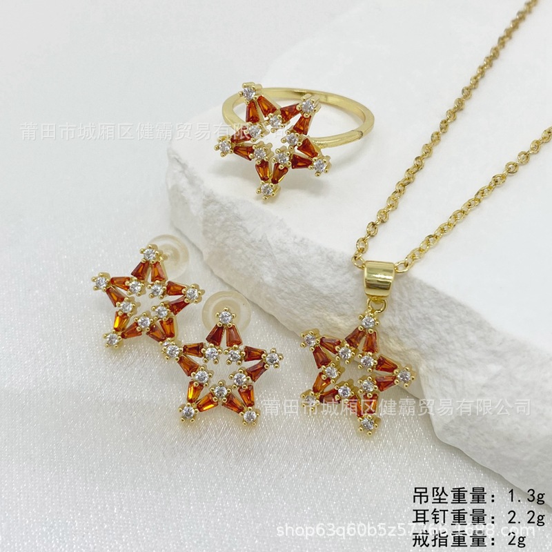 材质: 铜 货号: 24051201-01 品牌: xinrui 造型: 星形 处理工艺: 电镀 产地: 广州 主要下游平台: 淘宝,京东,ebay,PDD,亚马逊,w 颜色: 吊坠,耳钉,戒指 有可授权的自有品牌: 否 是否跨境出口专供货源: 是 流行元素: 无 上市年份/季节: 2024年春季 风格: 时尚OL 风格分类: 时尚通勤 主要销售地区: 欧洲,南美,东南亚,北美,东北亚,中东 流行元素分类: 无 重量: 0.02 kg/PCS