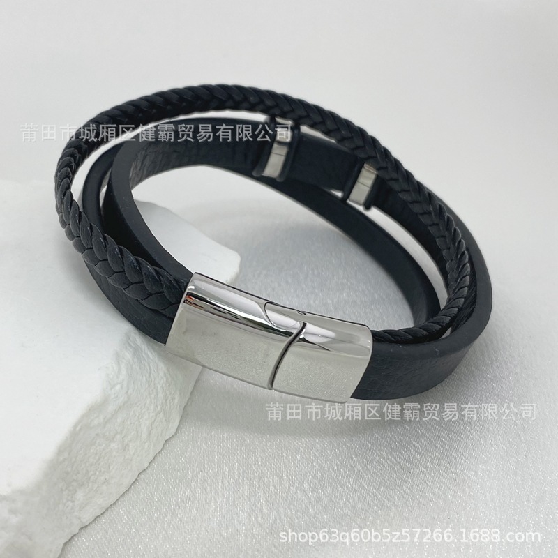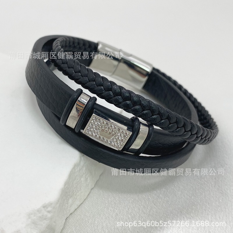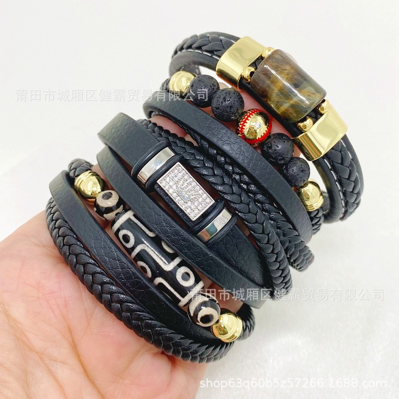 欧美时尚通勤款手环男士复古皮革编织手镯跨境爆款手镯 English | 投诉