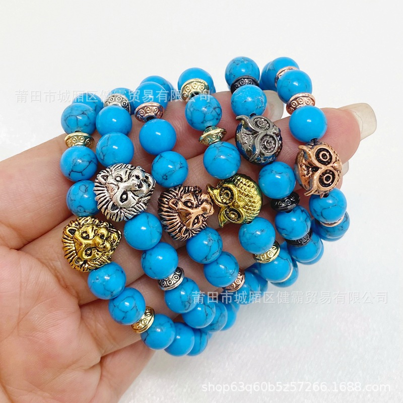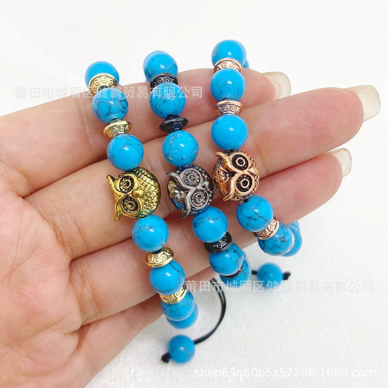跨境欧美爆款串珠手链女士波西米亚民族风松石狮头猫头鹰男手链 English | 投诉
